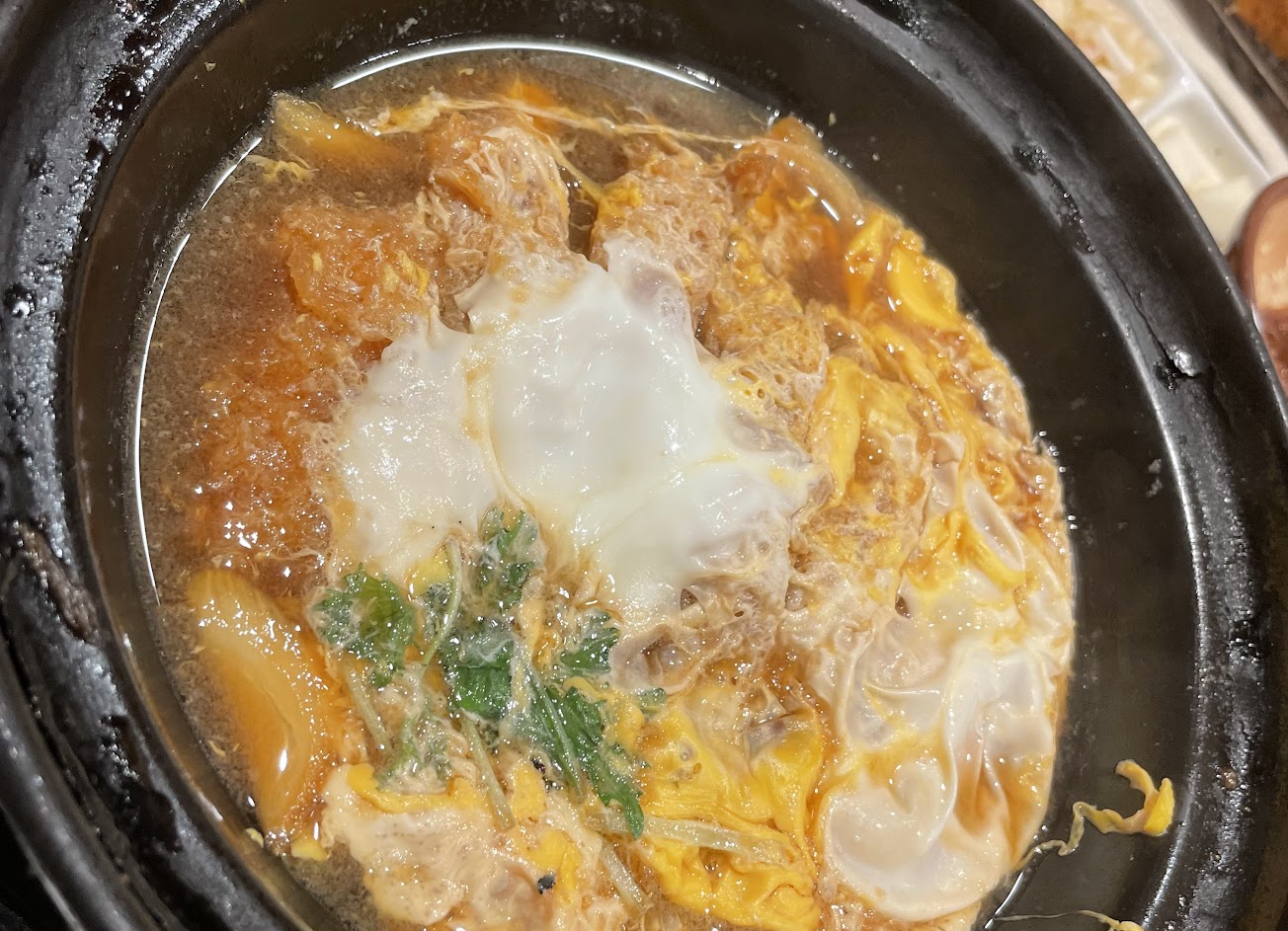 有滿滿的蔥很過癮 價錢偏高炸豬排好吃,口感厚且紮實。