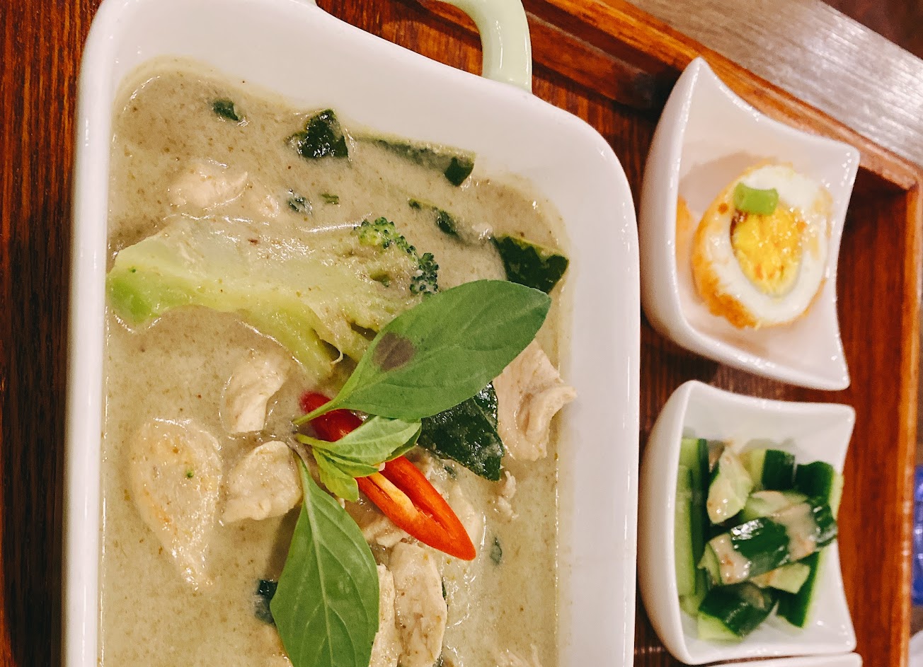 椒麻雞,紅綠咖哩超好吃,配泰式奶茶酸辣湯很對味,離火車站不遠,附近連機車都難停車
