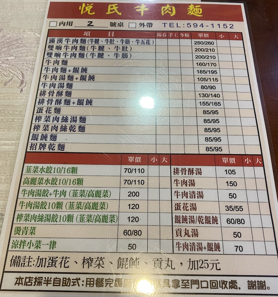 態度不好,我是內用的,一入桌就有看到桌上有寫用完餐自助回收,所以當我們一家吃飽後,想說先穿個外套在拿去回收,結果剛站起來穿外套,老闆娘馬上就口氣不佳的說,這裡用完餐要自己回收,我當下覺得怎樣我是有欠妳錢嗎?後來回收完要去騎車,我老公早就結完帳了,另外一個比較年輕的不知道已經結完帳,就口氣不好說,ㄟㄟㄟ,你們結帳了嗎?整個感覺都很不好,餐點也沒很優,點大碗牛肉麵,肉只有四小塊,麵也沒有很多,不會在去了。