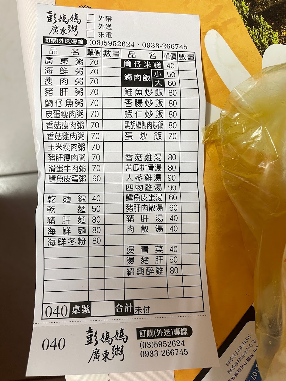 2024最新在地推薦餐廳的菜單_彭媽媽廣東粥的菜單、圖片