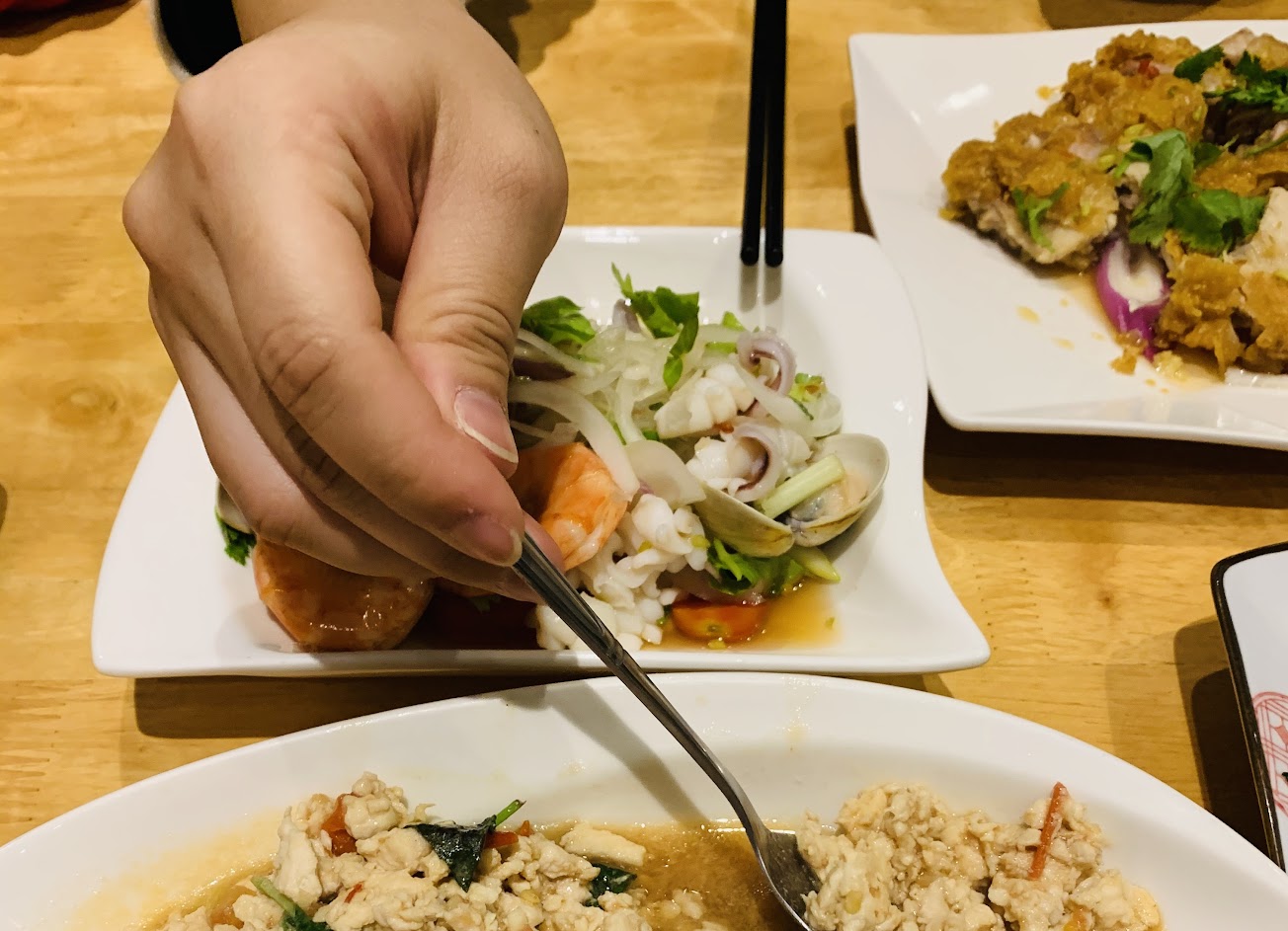 事隔一年後來吃,沒想到味道都變了,從貨櫃的味道吃到現在店面的不一樣了,我們點了媽媽麵(不酸不辣)、打拋豬(肉末沒入味)、椒麻雞(酥脆還不錯)、蝦醬空心(沒入味)、涼拌海鮮木瓜絲(海鮮沒入味),不知道是不是因為座位變多了,為了快速出餐,所以品質不見了?!