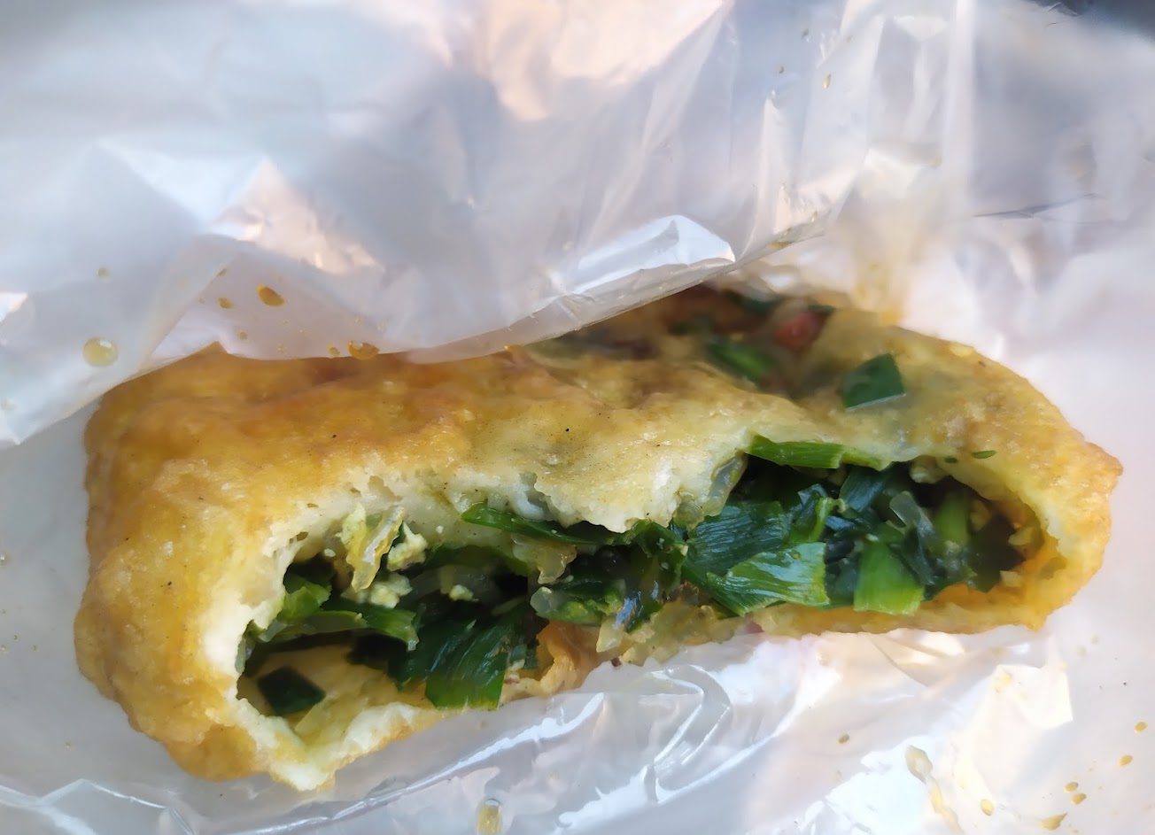 蔬菜口味(韭菜跟高麗菜)都會有些許冬粉在裡頭 香而不膩,建議買了之後早點吃,冷掉會有油味 不過通常是剛起鍋就幫你裝入袋,所以非常燙