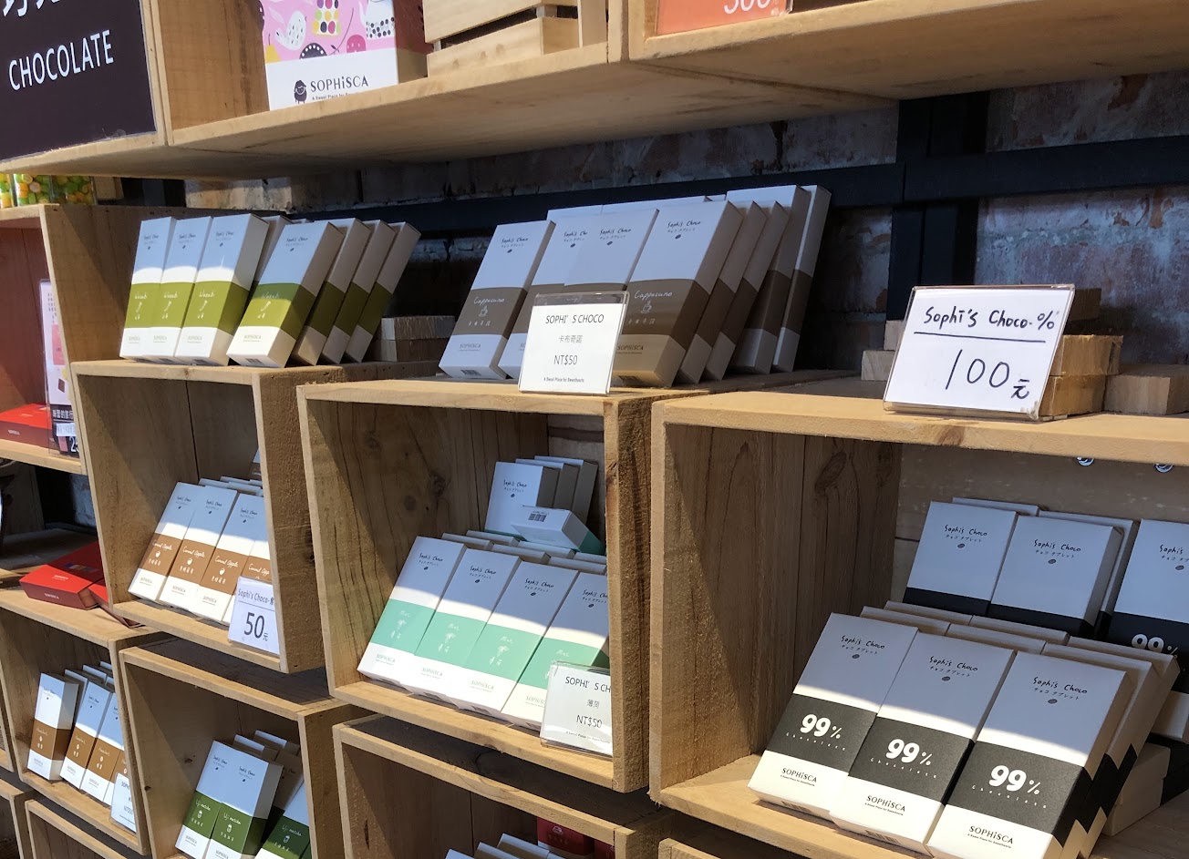 商店內 用巧克力 為主 搭配主提包裝 如 一日喪命散 含笑半步顛巧克力盒 千圓鈔票 印成 萬圓鈔票 的巧克力盒 千圓美鈔 巧克力盒 琴鍵巧克力盒 南瓜巧克力盒 青發 白板 麻將巧克力盒,
