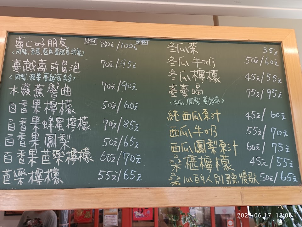 原來走進去位置區就可以看到老闆打果汁啊!怎麼網友會說沒有看到老闆打果汁勒?!還好我有走進去座位區! 反觀如果老闆在外面打果汁不就都把風飛沙喝下肚了嗎? 老闆真細心!