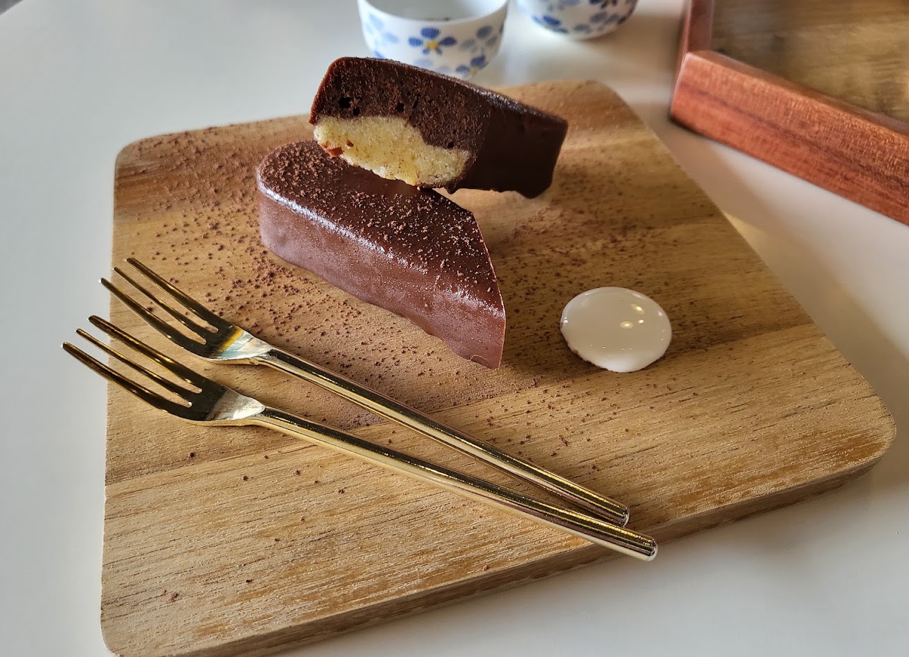 巧克力棒蛋糕不過甜,吃起來口感軟硬適中。拿鐵咖啡好喝。可LINE Pay。