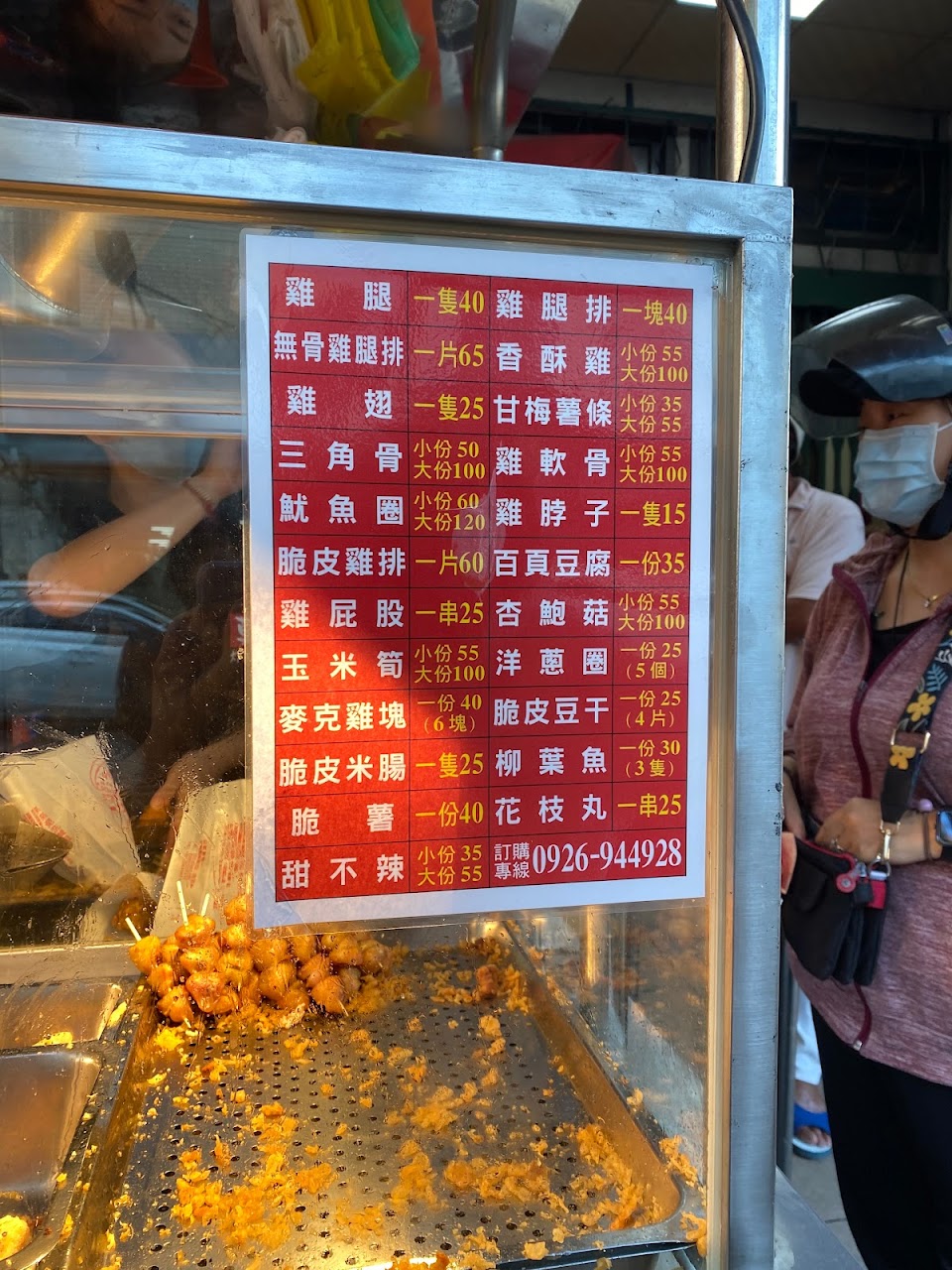 本日下午四點買兩隻雞腿兩串雞屁股,都很好吃沒問題。但是有一位女店員讓我等了十分鍾有餘!前面那位客人已經點完算好錢了,那位女店員還沒算完就算了,還要我等很久我才向正在裝兼炸的男店員詢問我可以點了嗎?那位女演員仍然無動於衷!至少向客人表示請問妳要點什麼之類的吧?不是站在那邊等人問,該店員工訓練需加強。非常不爽!