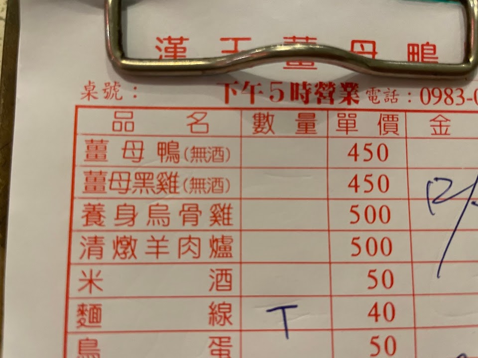 2024最新在地推薦餐廳的菜單_漢王薑母鴨的菜單、圖片