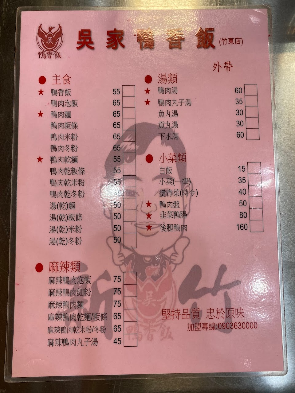2024最新在地推薦餐廳的菜單_新竹吳家鴨香飯-竹東店的菜單、圖片