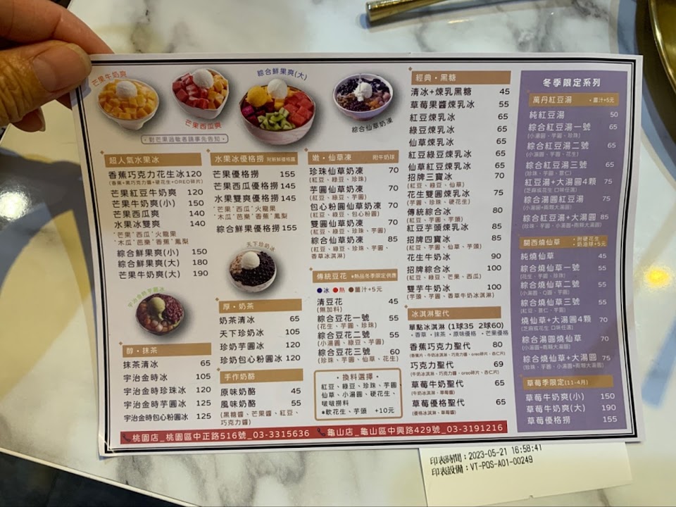 不知道是不是因為開分店,冰的品質變差了,水果也變差太多了,鳳梨選的不好會割舌頭,奇異果看起來就放很久都變透了,而且還加了一不好吃的堆椰果…..原本很喜歡吃的說…..但今天點了外送太失望了,150一份的冰吃起來卻沒有60塊的冰值得….!!