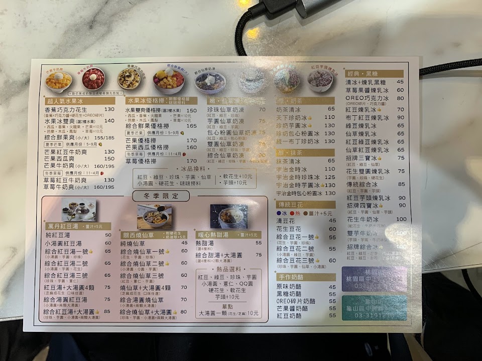 先說外包裝品質,因為在Uber eats看到評價不錯,google評價看起來也滿厲害,所以初次用餐是用外送,外包裝和塑膠袋都滿可愛,尤其奶酪的盒子超可愛,是硬的塑膠杯,還可以洗一洗重複利用! 再來是餐點部分的話,綜合紅豆湯不會很甜,吃得到食材原味與香味,配料這次選了小薏仁、芋圓跟小湯圓,小湯圓不會過硬,尤其是芋圓很好吃,但螞蟻人可能會覺得不夠甜。 奶酪也滿不錯的,這次是吃芒果口味。扣一顆星是芒果奶酪有點貴,滿小杯的要65,可能是杯子包裝太可愛成本高吧?有機會想去店內試試雪花冰系列。