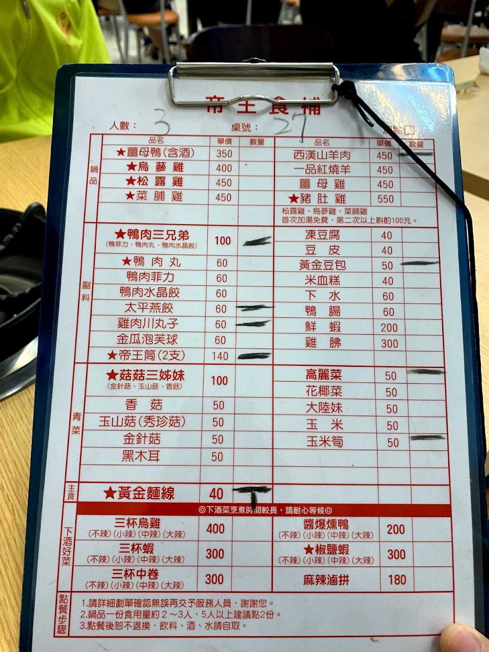 有松露雞,烏骨機,還有鴨可以選擇,三杯雞跟魷魚(價格450,700)元,應該,我沒記錯的話,有點忘了。