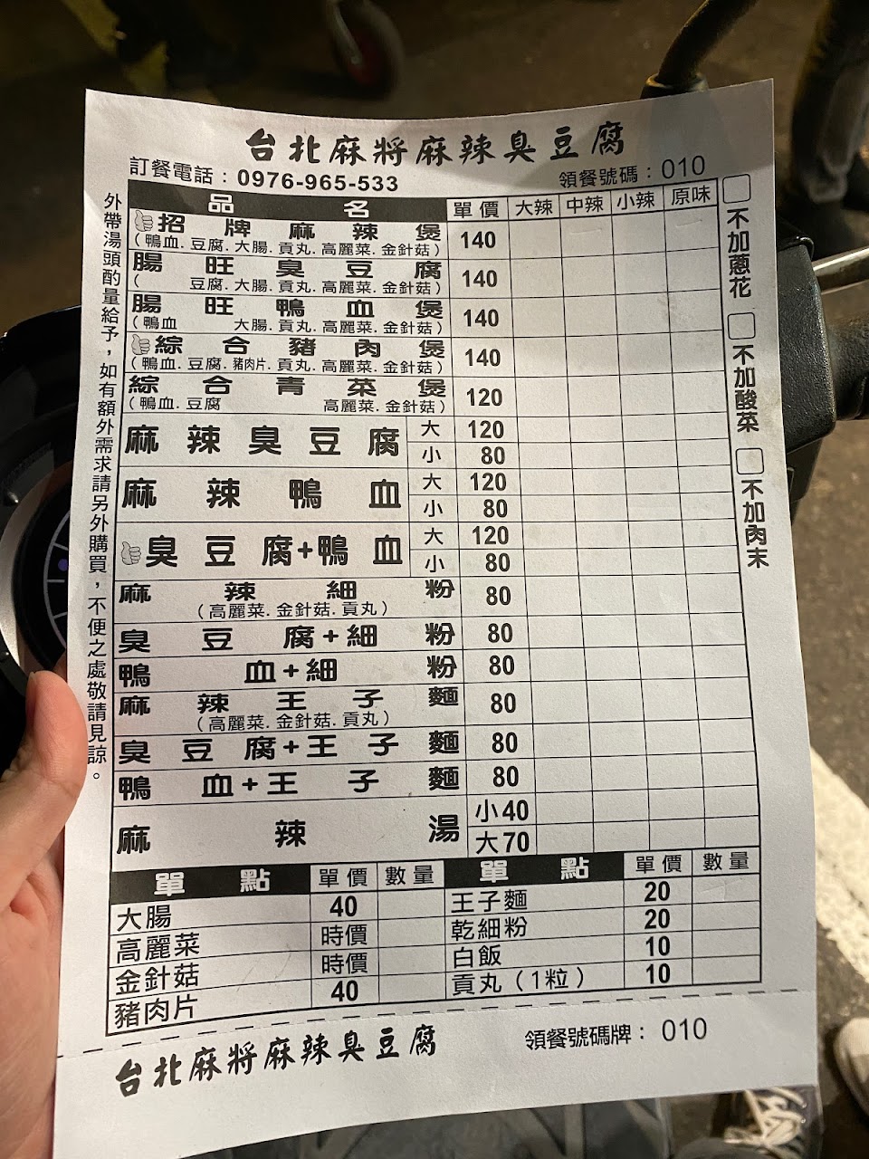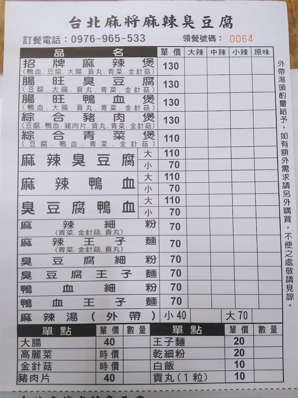 照片中的餐點為:腸旺鴨血煲+麻辣細粉