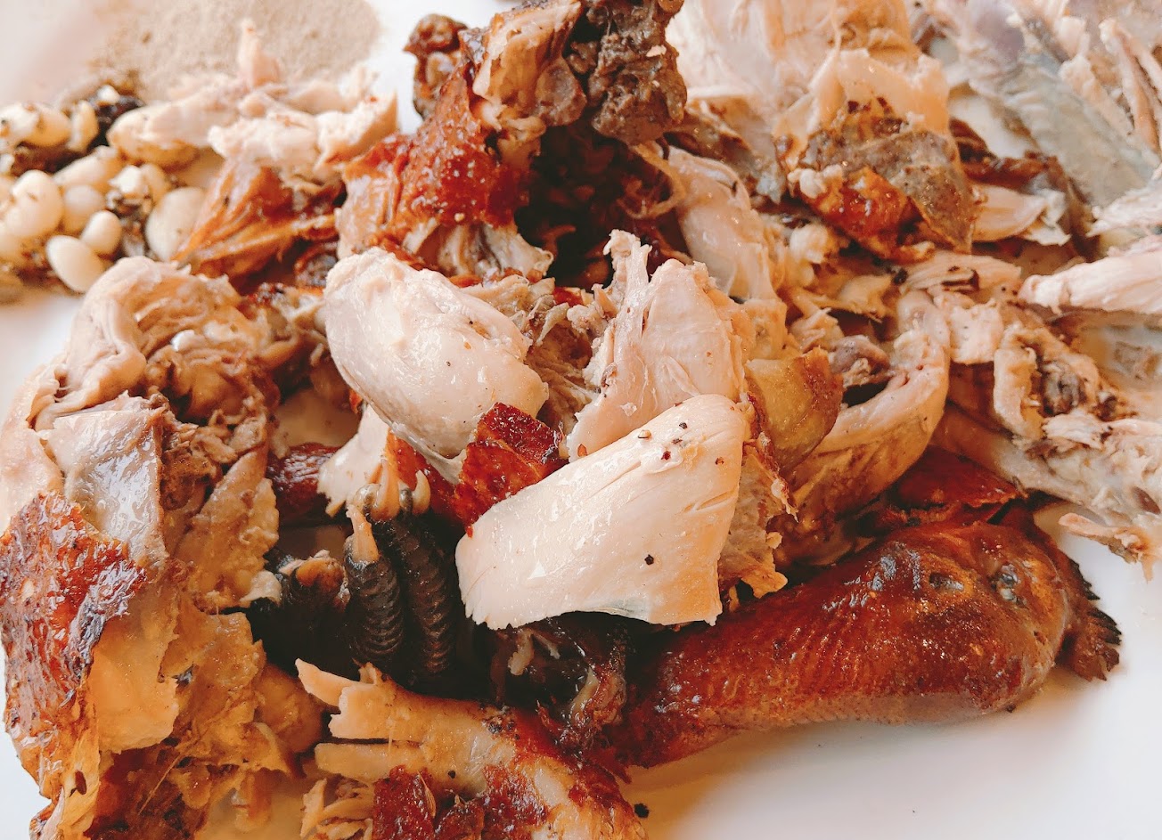 雞好吃,外皮脆而香,肉嫩多汁,但可能因為連假人多,為了快點出雞,有沒烤熟的狀況。