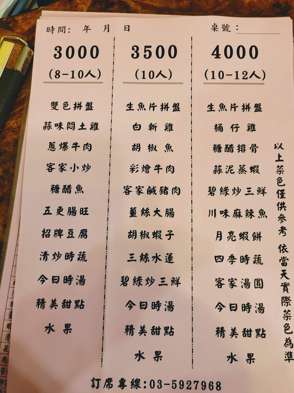 餐點:3