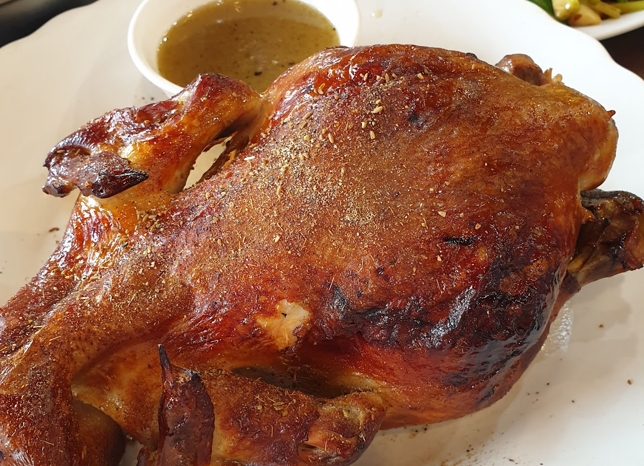 烤雞有特別的木頭煙燻香氣跟特製的香料味,兩大兩小可以吃完一整隻雞沒有問題。