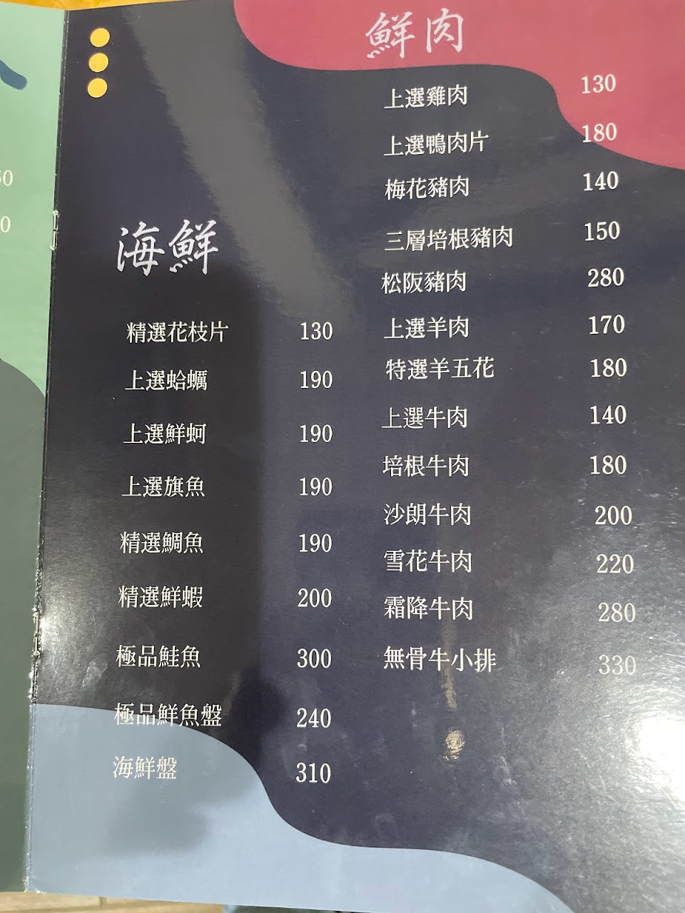 【不錯】上選羊肉鍋/豬肉鍋:8 分,菜盤新鮮少有火鍋料很不錯,肉片品質也好,可惜鍋底只有日式可選,其他鍋底價位稍高