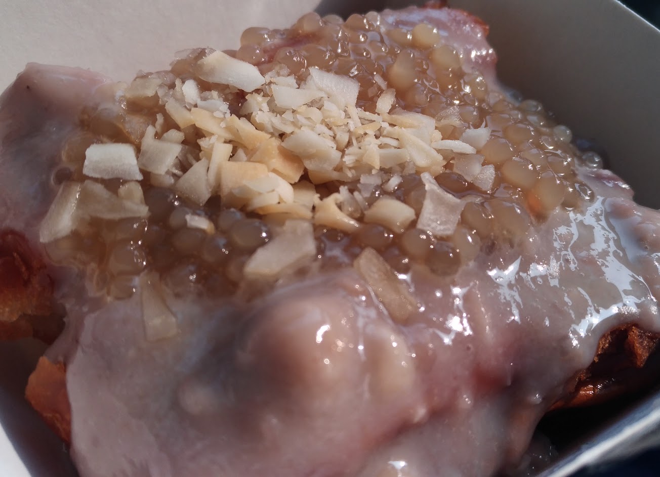 BC。推薦蟻族人來吃,主體吃起來酥脆,有炸甜甜圈或是銀絲卷的fu。 踏雪-奶粉+鹹奶油+煉乳。口味很甜的同時,帶出奶粉的香味,搭配剛炸好的主體,這款下次會再吃。 另一款,芋泥及其他配料豐富,甜度整體較低一些些,也不錯。 二訪,香蒜鹹起士口味,香味濃郁,也很棒。