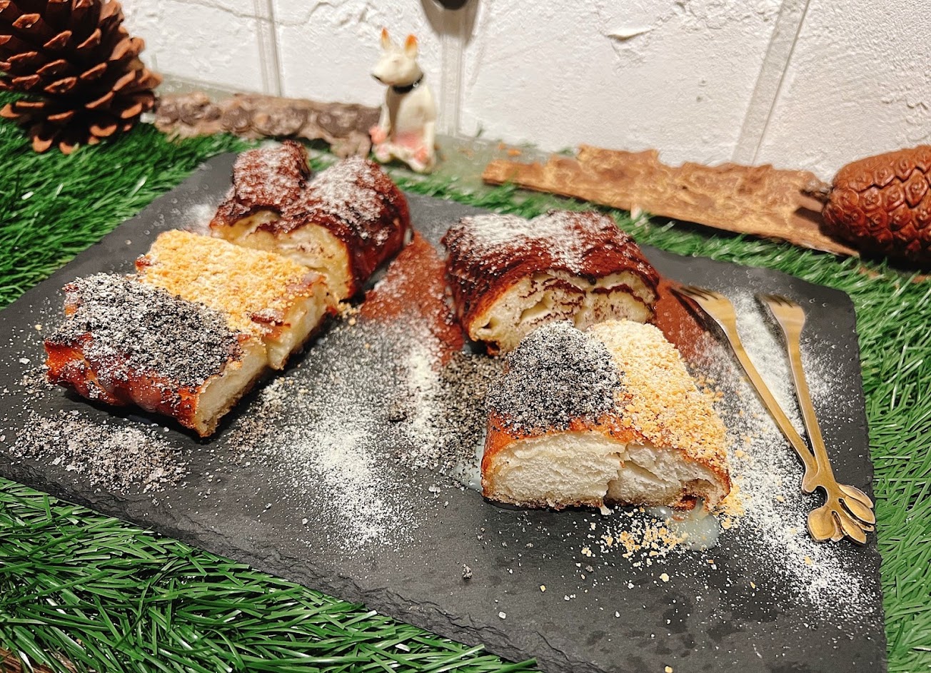 4/18回訪 今天第一次點黑金口味,這口味讓我有點驚艷,黑糖香又甜,配上鹹鹹的手工起司,鹹甜交織真的好吃!下午茶的好選擇,鹹的、甜的都好吃———————————————————————————————————————————————————— 等了三個月,終於在附近找到新地點重開囉!餐點還是依舊維持水準,鹹的、甜的都好吃!每種口味都各有特色,大推!