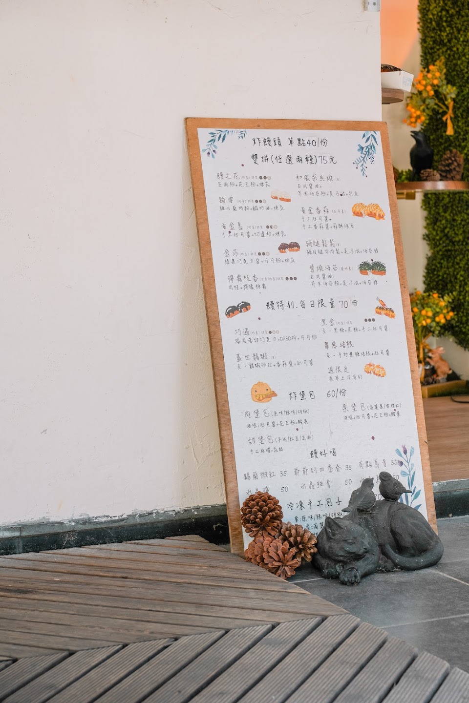 每次經過這間店都一堆人,今天又經過決定買來試試看,這次點了金莎跟檸霜桂香的雙拼口味,覺得可以雙拼超貼心! 店的用餐空間都是戶外,裝潢可愛有巧思 本來還在猶豫要不要買,正當還在思考的時候就陸續來了4、5組客人,點餐完畢又來了2、3組,生意真的滿好的,但雖然是現點現做,但老闆對於製作流程掌握的很好,等的時間其實不久,而且從小窗戶看老闆在製作其實有點療癒? 帶回家時已經有點涼掉,但依然好吃,也完全不油膩!這點讓我滿驚豔的,尤其檸霜桂香的部分,覺得他應該更適合涼掉的時候吃,檸霜的部分變得脆脆的,晚上吃的有點飽也不會覺得吃這個口味會感到負擔,本來對於銀絲卷沾煉乳沒什麼興趣,但饅好吃有讓我對這甜點改觀