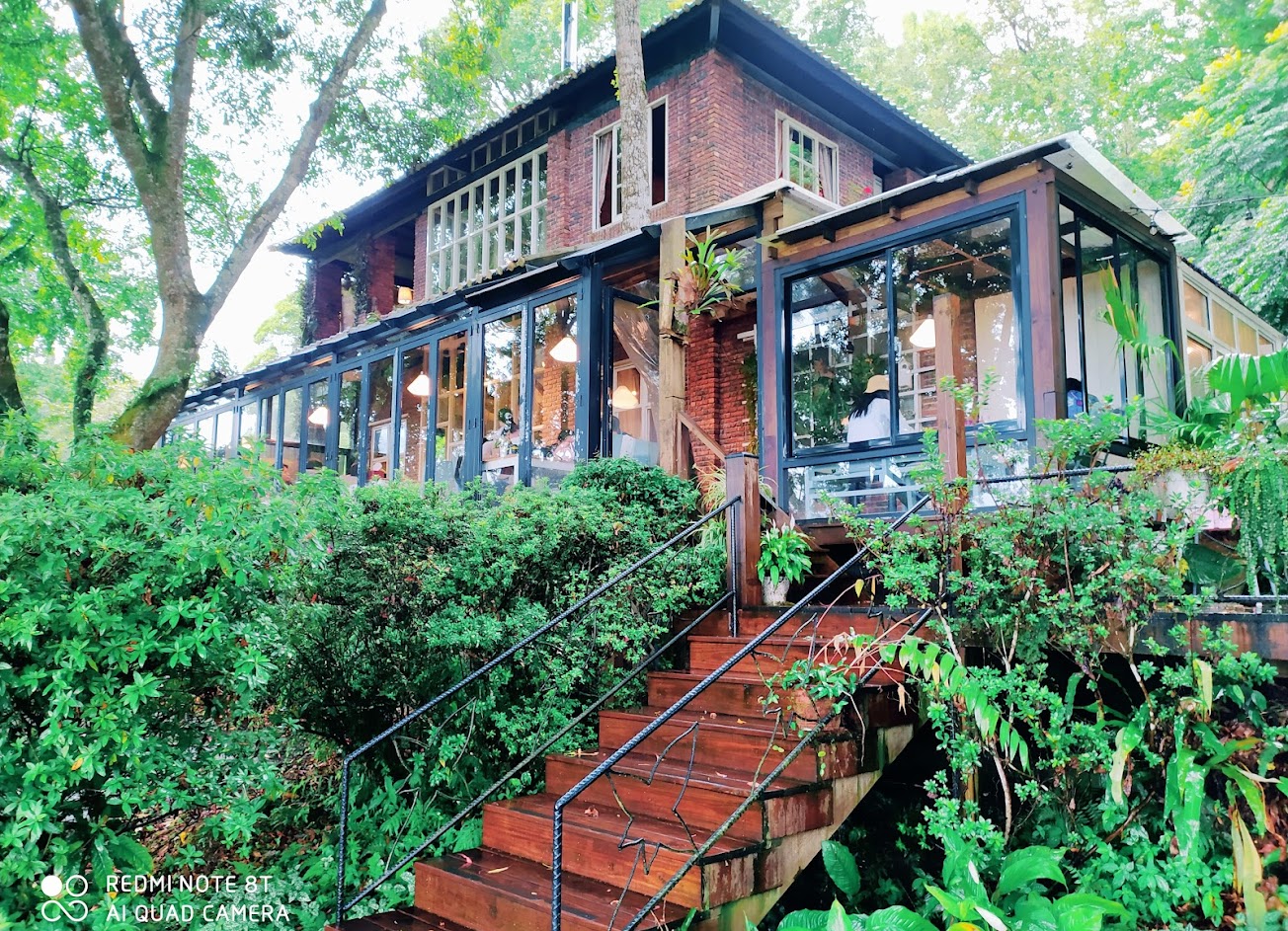 進去與出來只有一條路,而且部分路段很難會車,路面也不平不是很好走,但很值得前往。置身在森林裡的餐廳,戶外位子的每個角落都好美,室內就很吵雜,但是夏天還是得坐在室內比較涼爽。之後秋冬一定要再次來造訪。