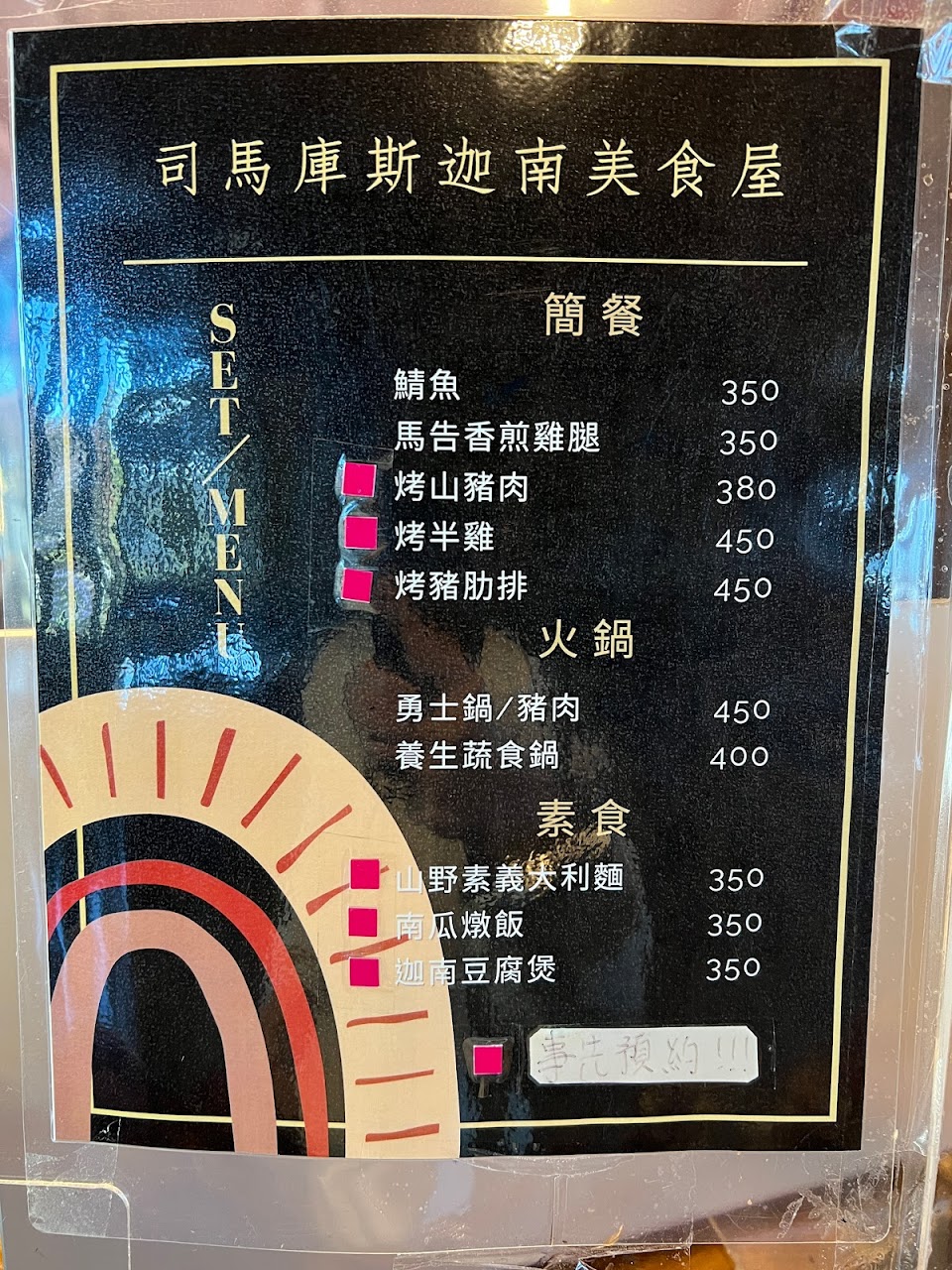 鯖魚飯:3/10 魚有點腥味,有大刺 勇士鍋:6/10 肉量算多,配菜普通。推薦晚上很冷的時候吃,不然就只是一般的火鍋 山豬肉:8.5/10 好吃 半雞:8.5/10 好吃 肉很嫩!有特殊香氣,?️喜歡的 以配菜來說大概只有三分…第一晚跟隔天的配菜一樣,份量滿少的。湯頭的雞肉很柴。
