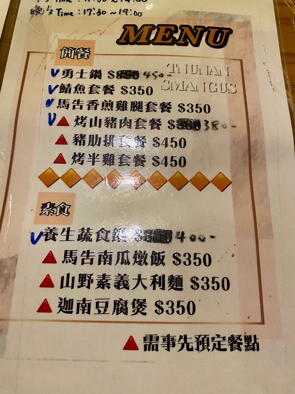 店內套餐350-450元,口味還不錯,畢竟山區對餐點也不太能以高標去做比較。