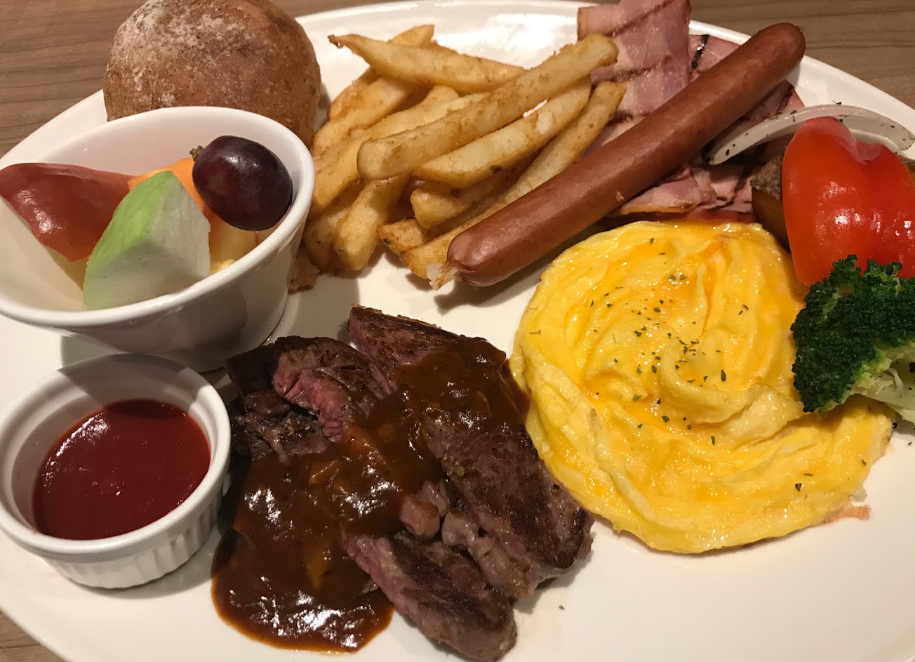 我點大胃王早午餐,德式香腸有三條偏多,因為本身就有鹹度單吃會很鹹,另外還有照片外的起司漢堡排,起司不夠濃漢堡排很乾柴。其他可,環境大裝潢漂亮