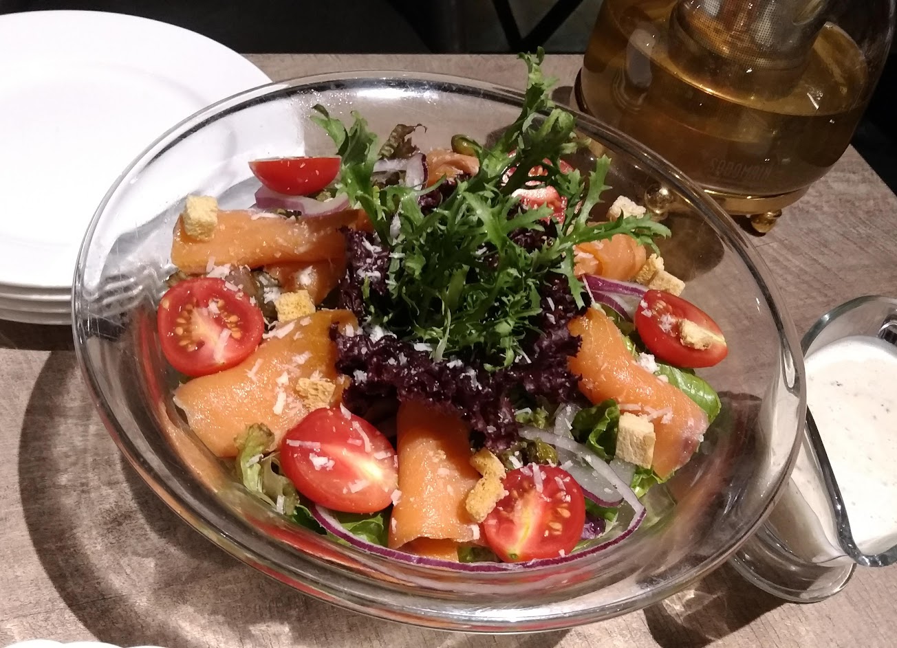 1. 鮭魚燉飯 五顆星 非常好吃,我點了套餐,南瓜濃湯好喝,但是不夠熱;麵包是熱呼呼的好吃,燉飯奶油味道很香 鮭魚肉片也讚
