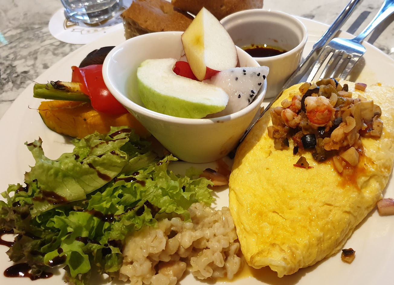 也說些優點,裝潢挺美,座位寬敞,用餐沒有壓迫感,咖啡夠水準,服務也算親切,價錢也算合理,餐食口味本來也應該可以得分的,但…..熱食變冷、海鮮麵放久腥味也重了些,扣分不少