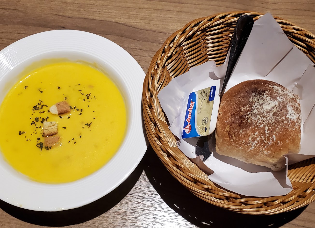 空間寬敞明亮,環境優美又乾淨舒適的地方。餐點也好吃,附餐的麵包是烤得熱騰騰的上餐。很適合久坐談心聊天。