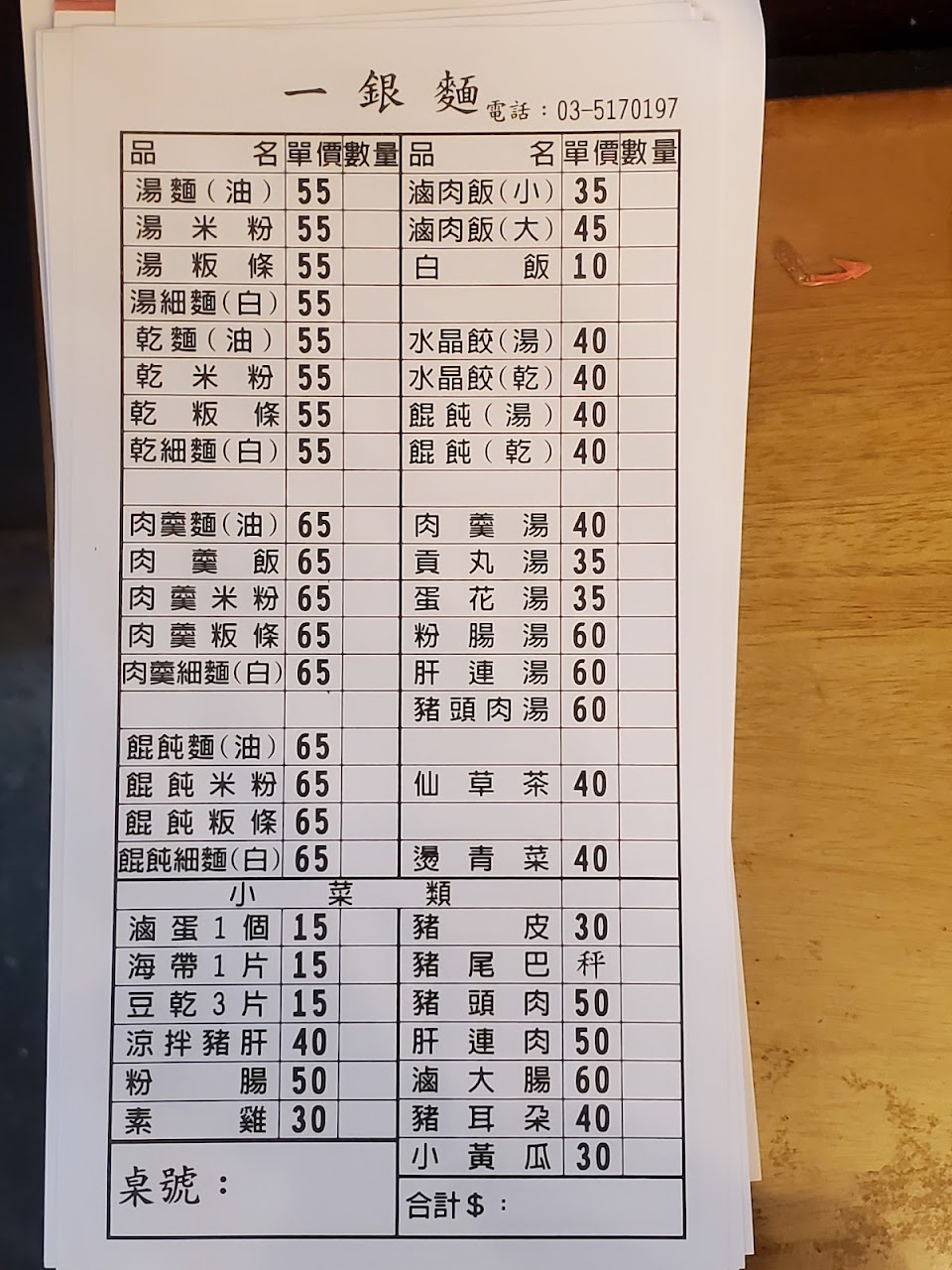 2024最新在地推薦餐廳的菜單_一銀麵的菜單、圖片