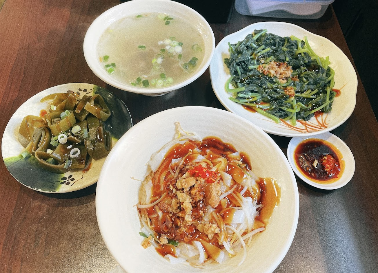 因為沒有很餓 所以簡單的點了幾樣 小菜基本味道都還不錯 餛飩湯很普通 乾米粉我還滿喜歡 肉羹米粉還好 服務 內用 餐點類型 晚餐