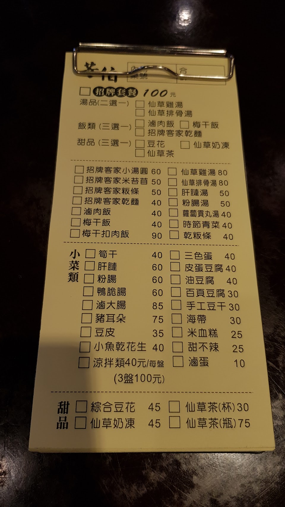 附上點菜單證明自己都有吃到這些東西 先講他們的招牌好了—-仙草雞湯 這個有點像是補品 我個人覺得見仁見智 雞肉的部分很軟嫩 湯的話是用仙草下去熬的 我猜應該沒有放鹽巴可能是會破壞整體的味道吧 以前家裡老一輩的熬補品好像也沒有在放鹽巴 雖然喝得出來有仙草的香氣 但是我個人不喜歡 然後價格的部分我覺得不便宜 可能因為是補品吧 份量蠻小的 但是一份要90 可以很多人點一份來嚐鮮 滷味的部分有點普通 沒有很好吃也沒有難吃 屬於還可以的那種 飯的話我點梅乾飯 可能因為醬汁直接加在白飯上面讓飯變得比較濕軟一點 沒有什麼香氣 就是一碗梅乾飯 最後要稱讚的是他們的仙草奶凍 裡面的芋圓跟地瓜圓真的超有嚼勁超棒的 仙草變成凍之後變得很好吃 再加上鮮奶油整個超棒的 如果他們只單賣這樣的話我絕對給五顆星好評 如果大家想要多重享受一次滿足的話建議點套餐會比較划算喔