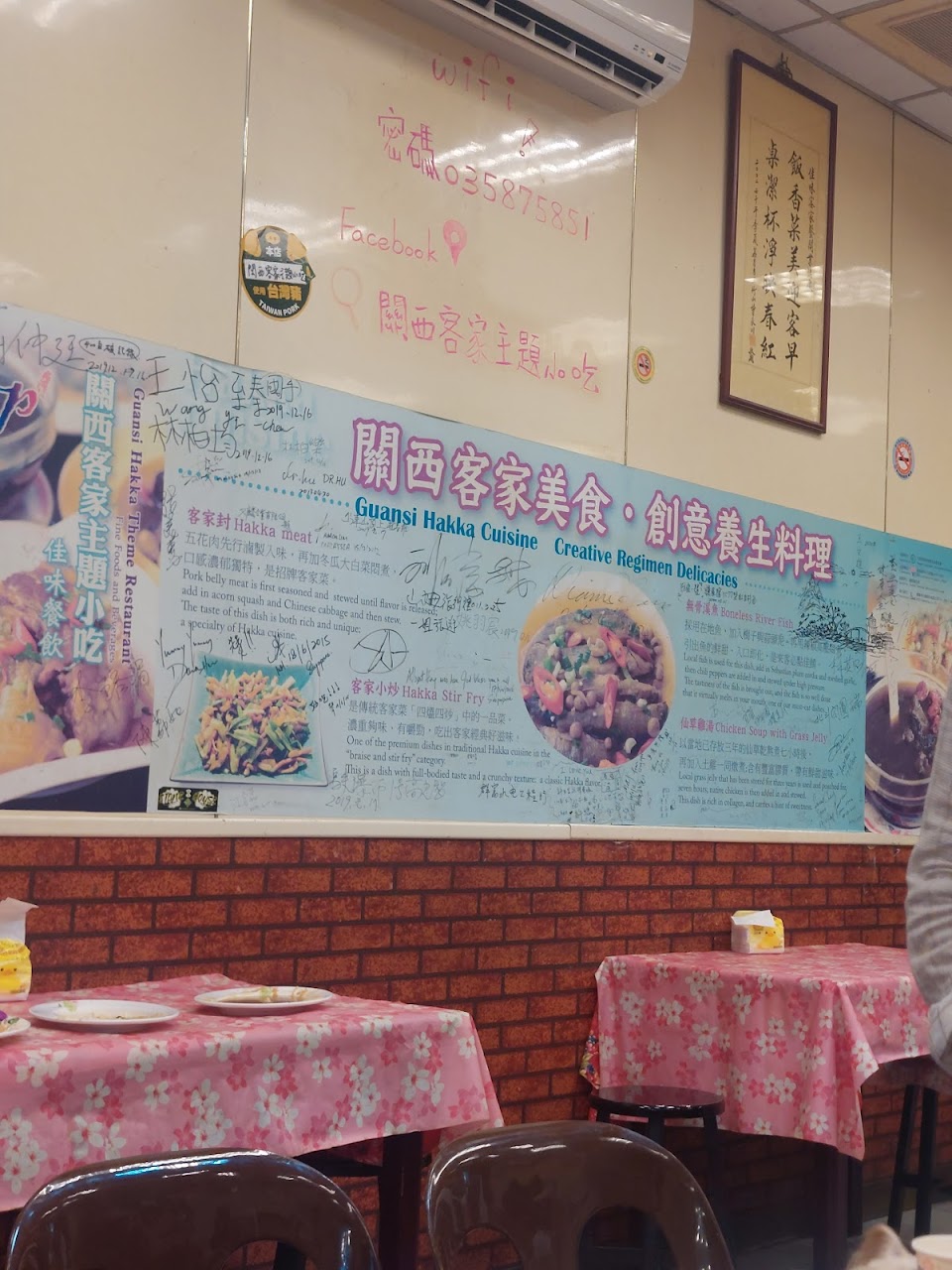 看招牌 客家主題小吃 跟太太進去用餐 品嘗看看 點了 1.阿嬤私房菜 醬油太死鹹 如何下飯 2.桂竹筍 清淡無味 3.客家小炒( 所有配料應有都有 ) 可惜 炒出來平淡口味 沒發揮 廚師 應有功夫 4.地瓜葉 OK 建議 如 醬料 能因應菜色 調整一下 就符合 色香味俱全 客家主題小吃 特色餐廳