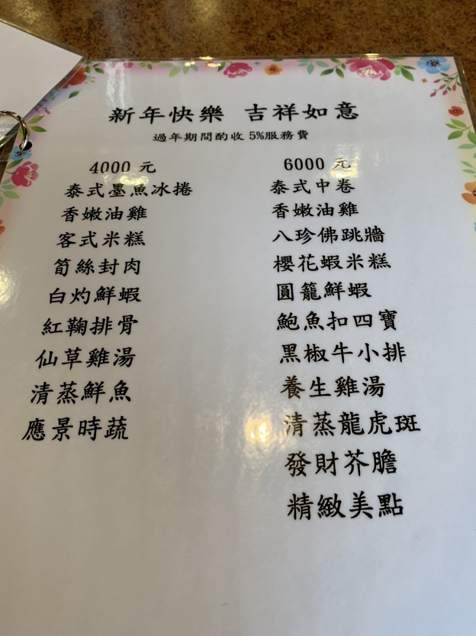 餐點:5