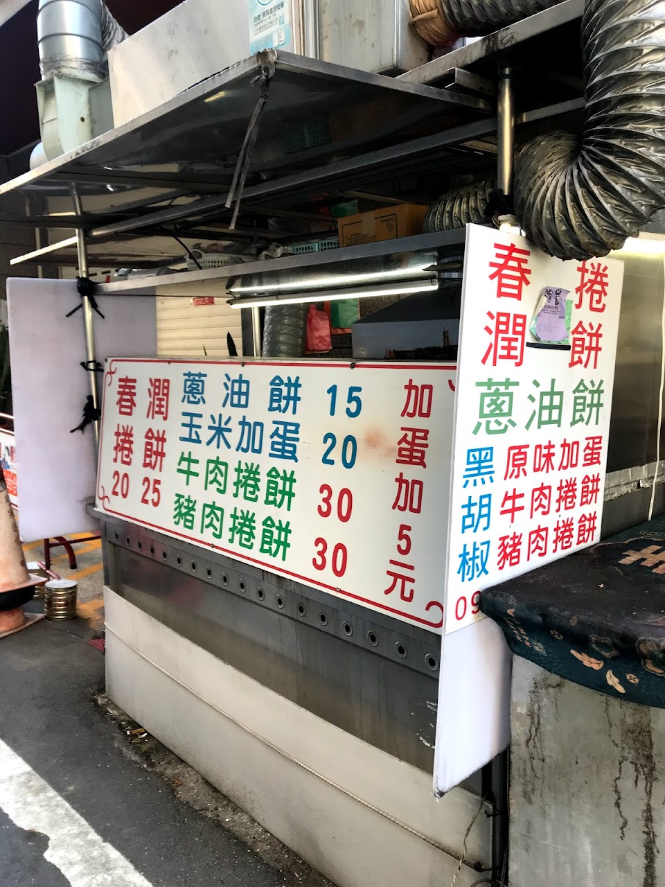 牛肉捲餅有九層塔、小黃瓜、蛋、牛肉只賣$40。春捲$25,皮又脆又香。CP值超高,推!