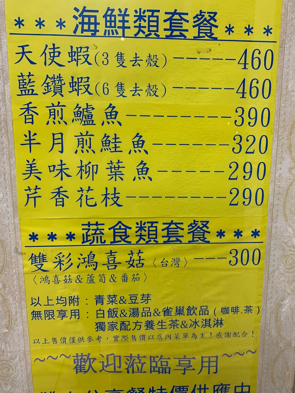 當天平日晚上進去,只有一桌客人,店內裝潢偏老舊,提供的自助吧東西也很普通,但餐點價格卻令人驚訝的高,高麗菜跟豆芽菜都非常清淡沒什麼味道,下次不會再來