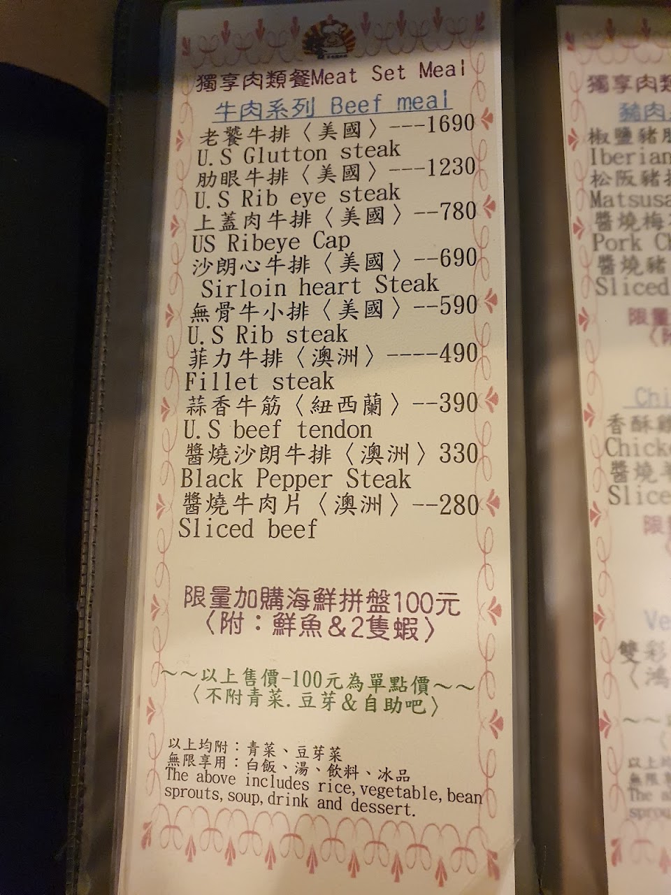 網路上的菜單是尚未調整過的價錢,以下照片是2018/04/25時用餐的菜單