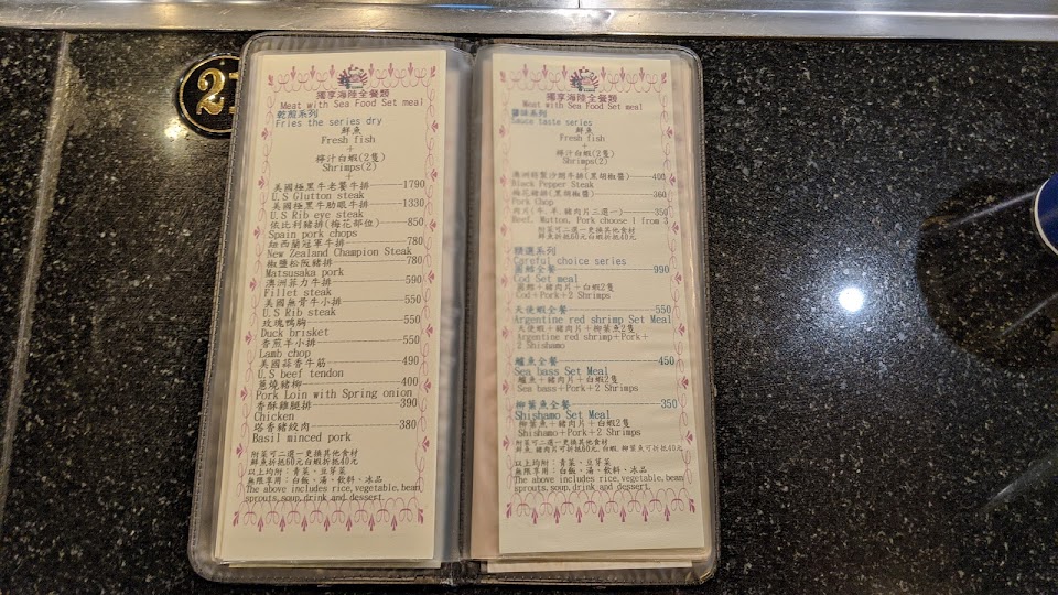 一家有歷史的鐵板燒店,老闆娘很性格,但人不壞不要太在意,東西蠻新鮮好吃,+100元可以吃蝦跟鱈魚,有客惟您冰淇淋,蜂蜜水、咖啡、湯、飯、可可都是自助吃到飽。