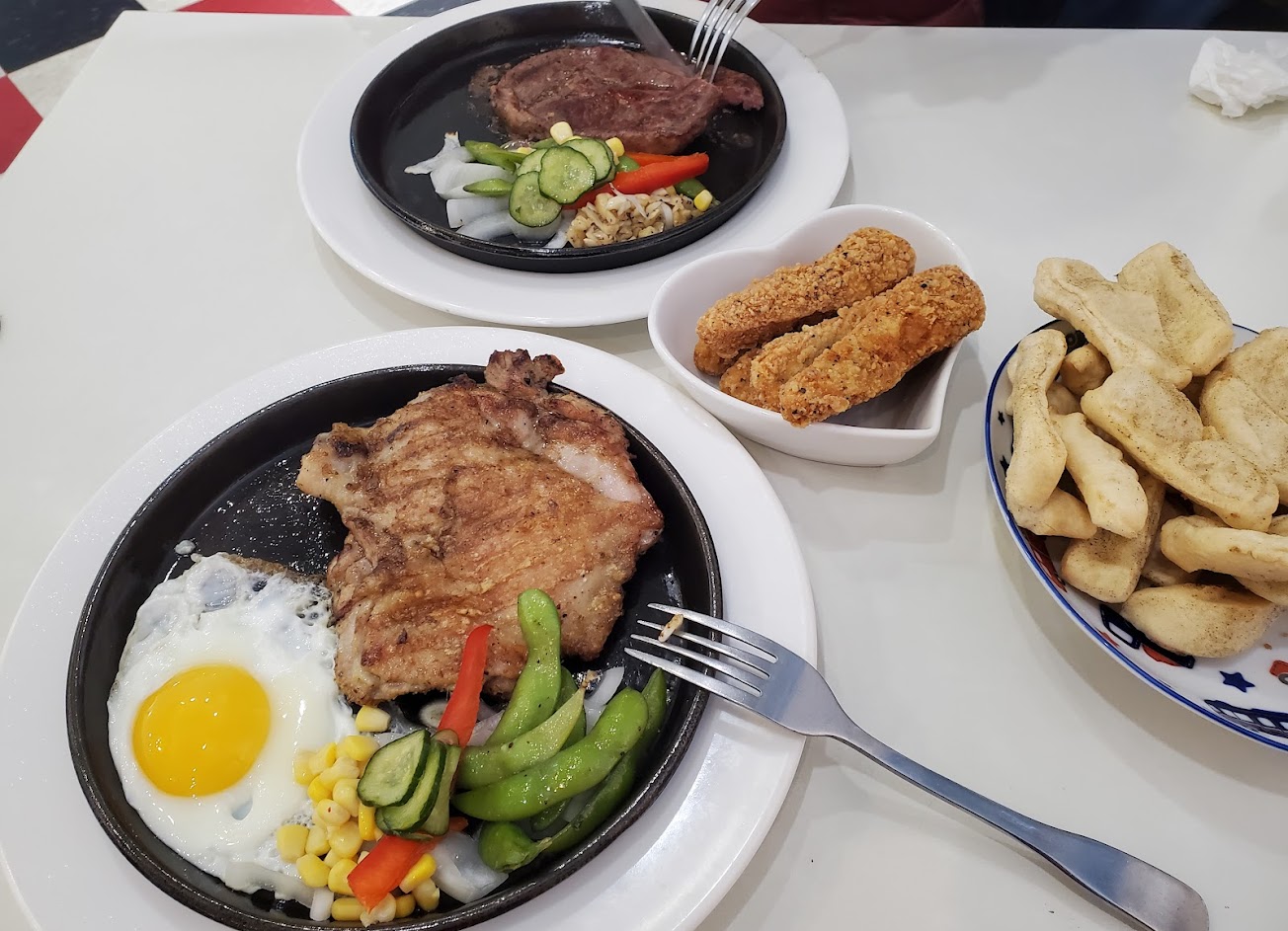 餐點不夠熱 雞排牛排不是現煎 是回鍋加熱的 牛排硬的跟石頭一樣