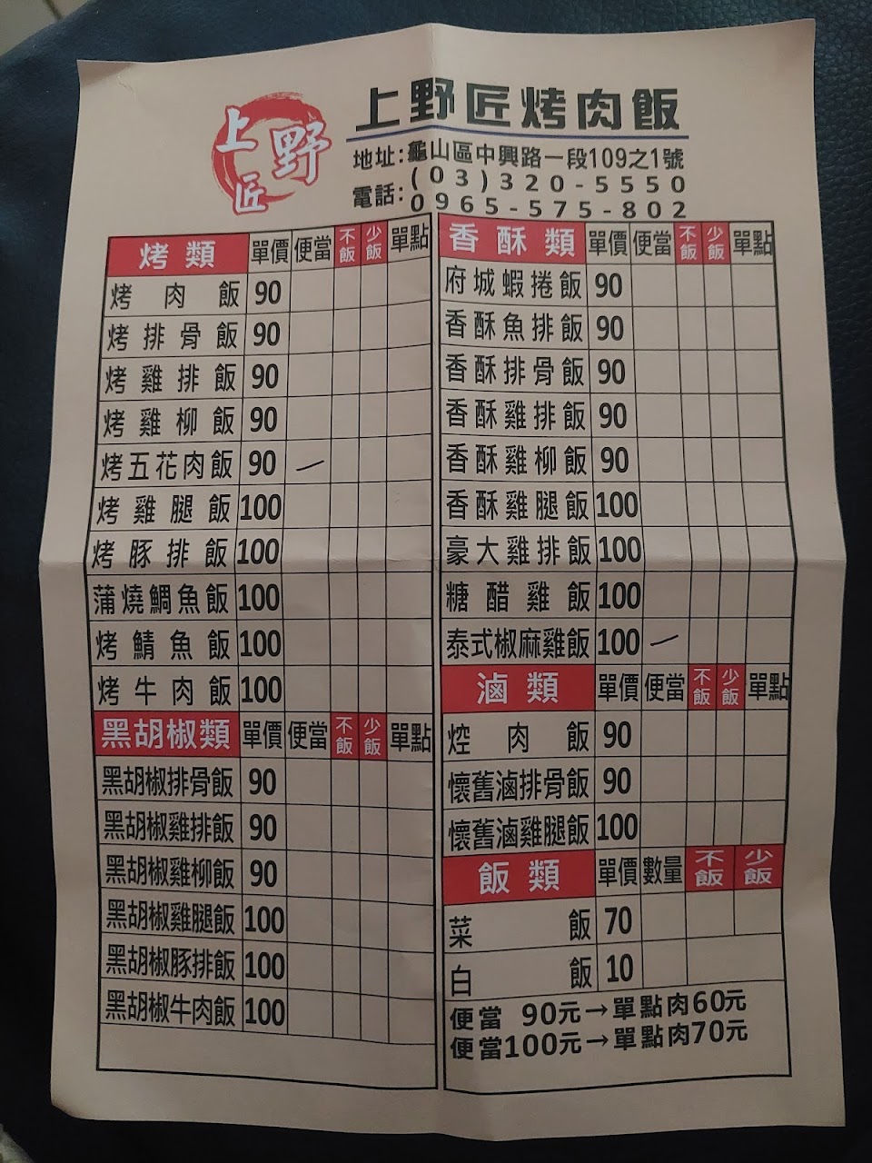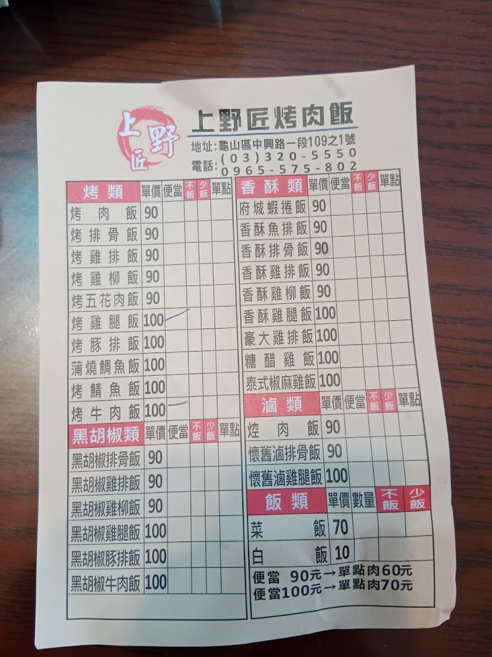 2024最新在地推薦餐廳的菜單_上野匠烤肉飯龜山店的菜單、圖片