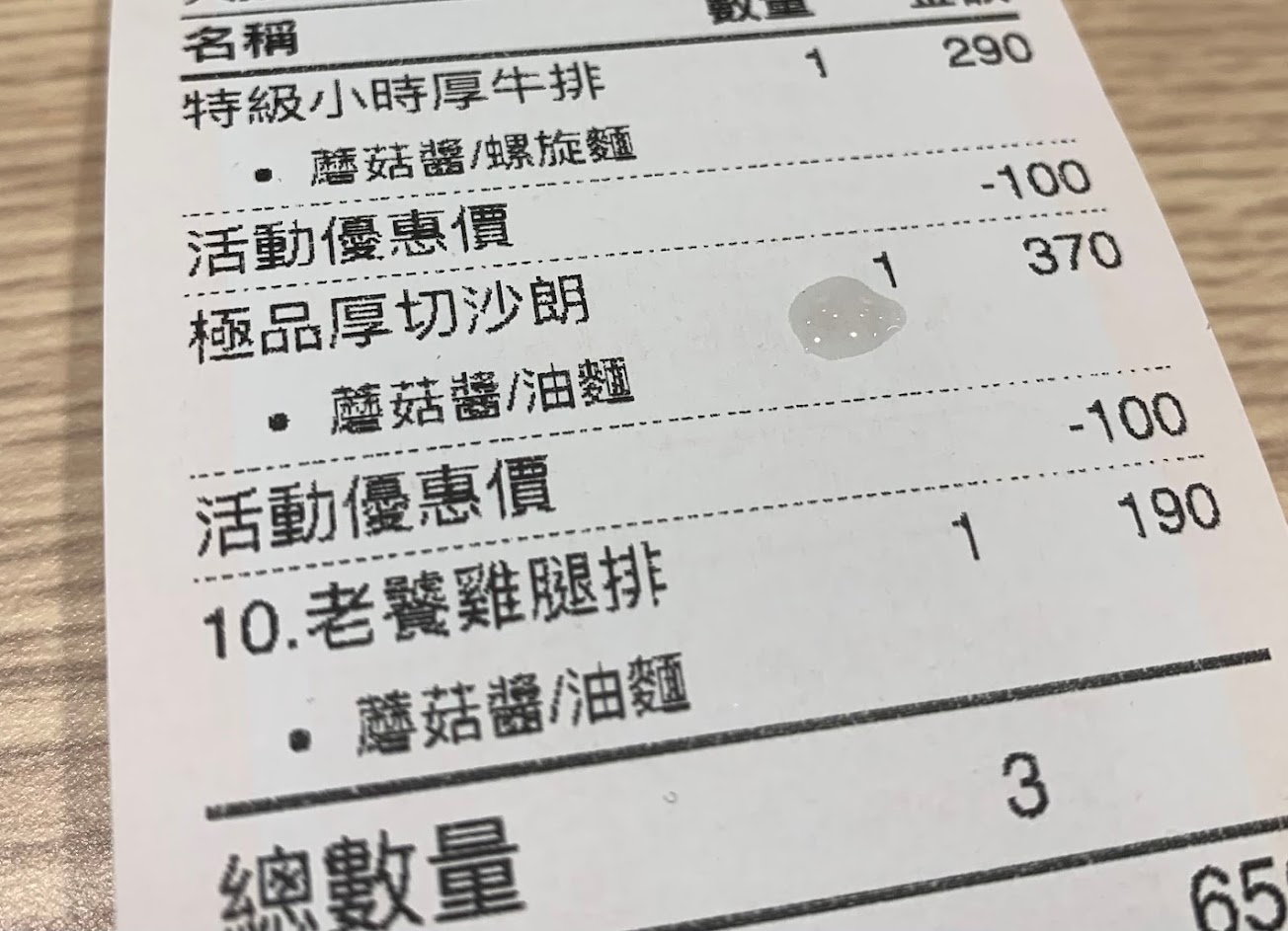 建議不要點190元的小時厚牛排,