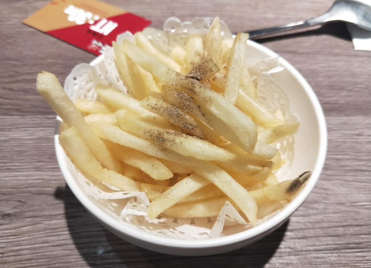 濃湯勾芡不重,很濃郁而且還可以續喝,飲料有果汁及紅茶可以選擇,牛排是原肉質地鮮嫩吃起來不會鬆散,薯條是現榨的不會慎很多油,麵條是現炒的不會太黏太硬,夜市價格卻有餐廳等級的口味、品質與服務,唯一可惜的是生意太好,但老闆還是很耐心的服務每一桌的客人,用心服務給五顆星~ 建議大家可以先訂個位置比較不需要排隊拿號碼牌