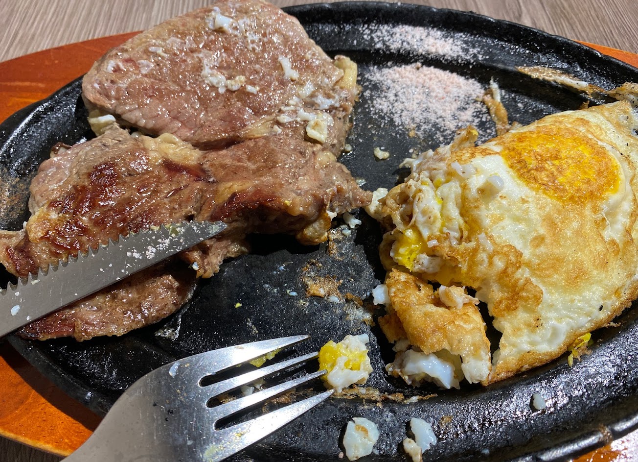 以平價牛排來說,這家店是我的首選,點最便宜的牛排就很好吃了,點貴一點的有時反而口感不太好,以牛排來說中規中矩,最特別的反而是他的鐵板麵,有一種甜甜的蛋香,我吃過最好吃的鐵板麵就是在這吃的啦!