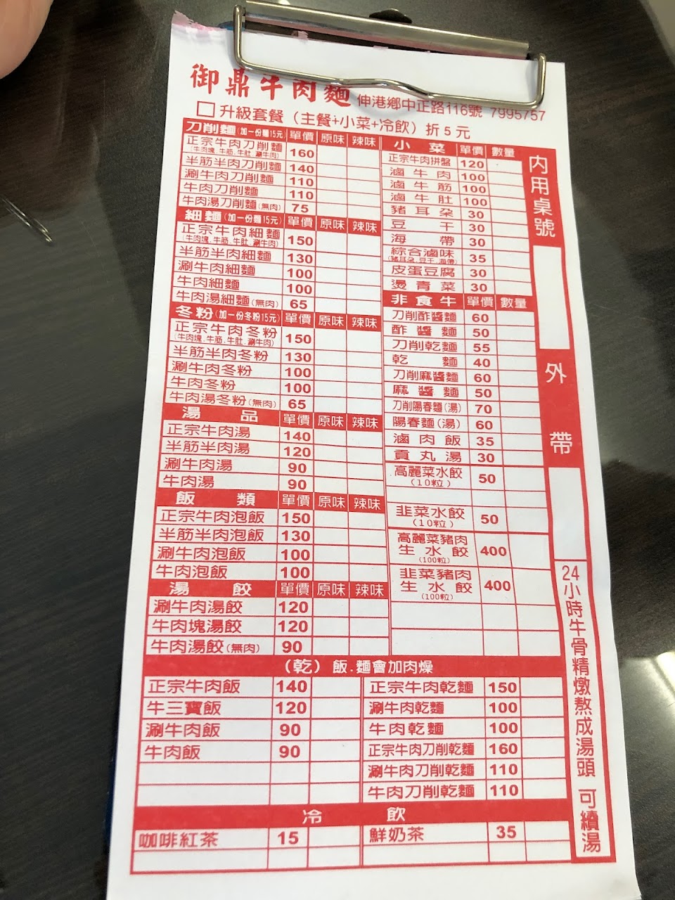 2024最新在地推薦餐廳的菜單_御鼎牛肉麵(伸港店)的菜單、圖片