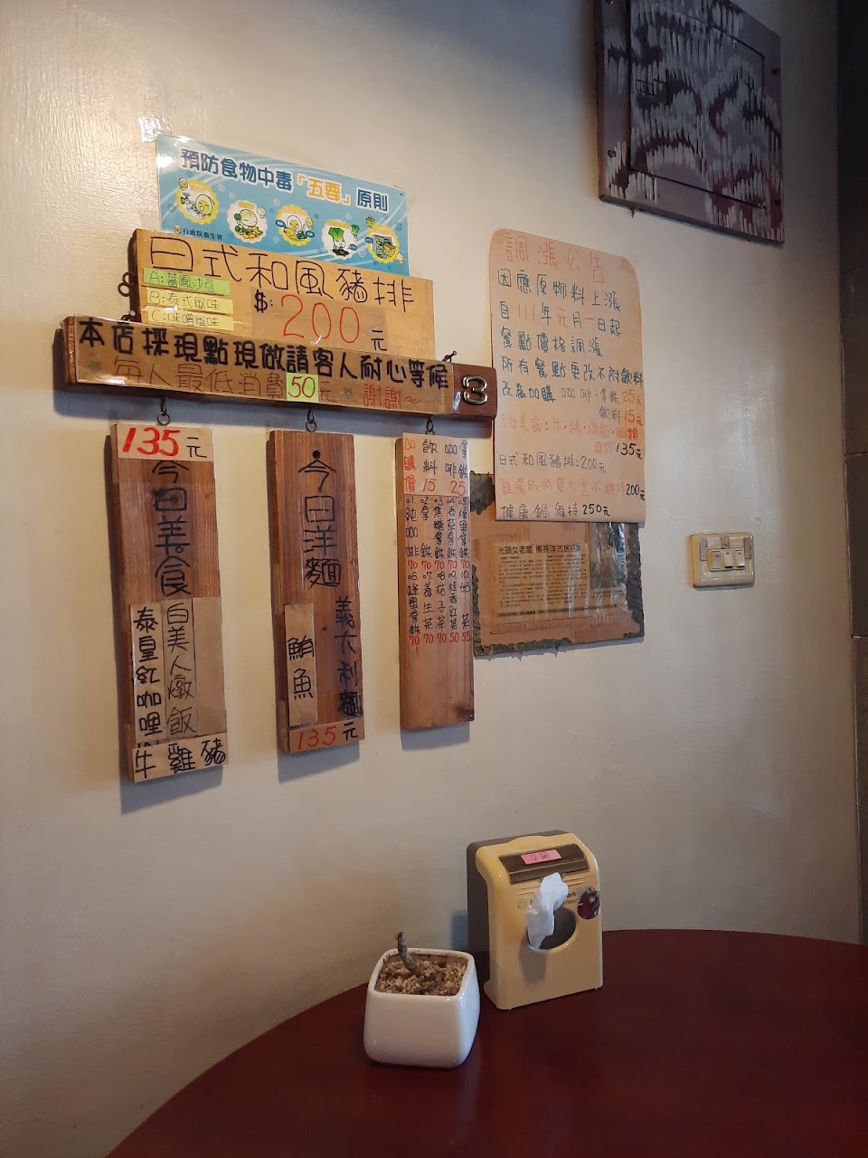 家庭式餐館,老闆娘說 菜單不定時會改,CP值還可以,假日可以先電話訂餐,就可以免等待喔~