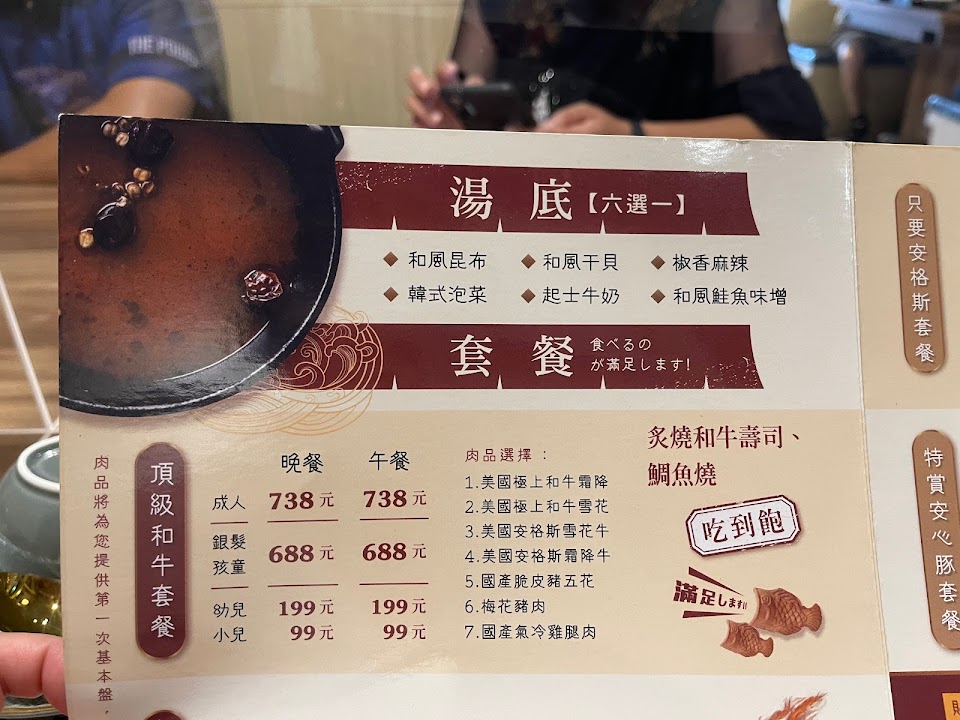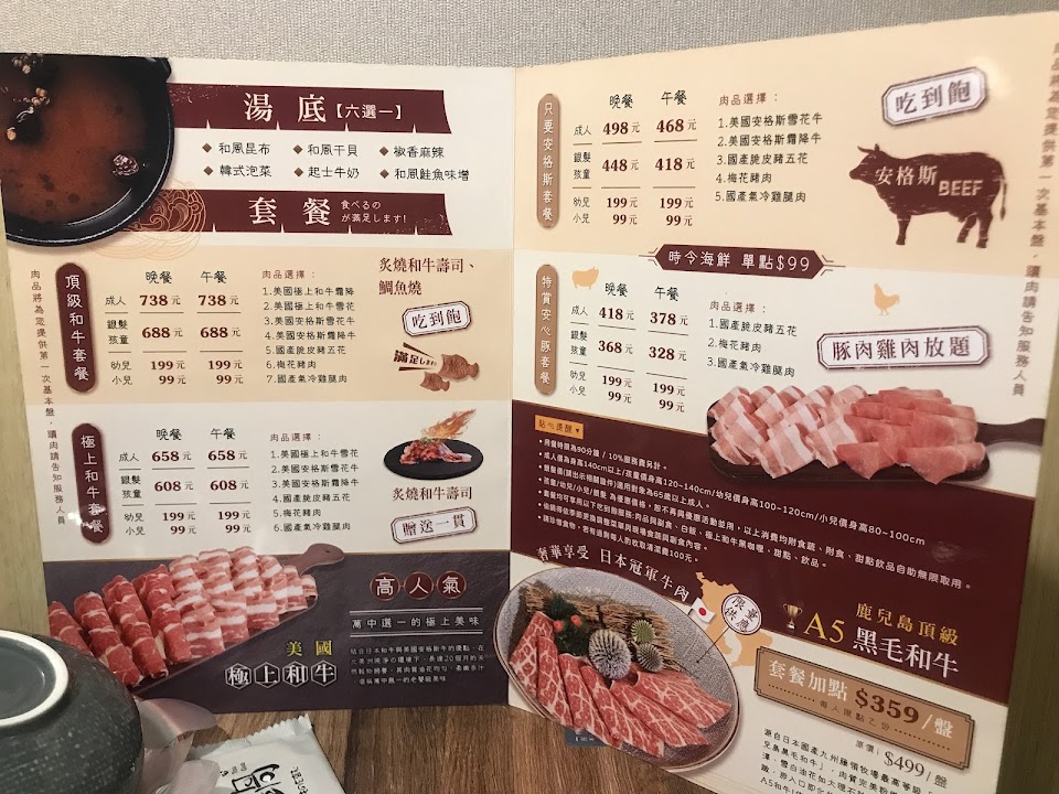 吃了最頂級的價位,肉品等級說明與實際不符合,安格斯?!伊比利?!也未在菜單上明確標示其組合肉,肉片薄的都快爛成泥了,只有黑毛豬比較可以,霜淇淋機跟咖啡機整場都是待料狀態,無法提供,真無言。