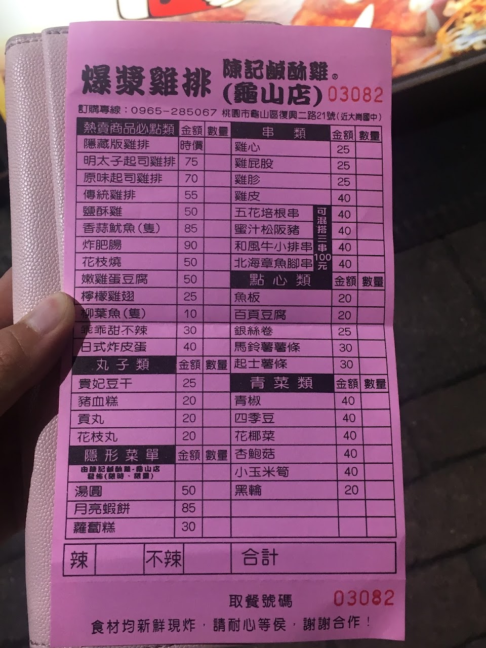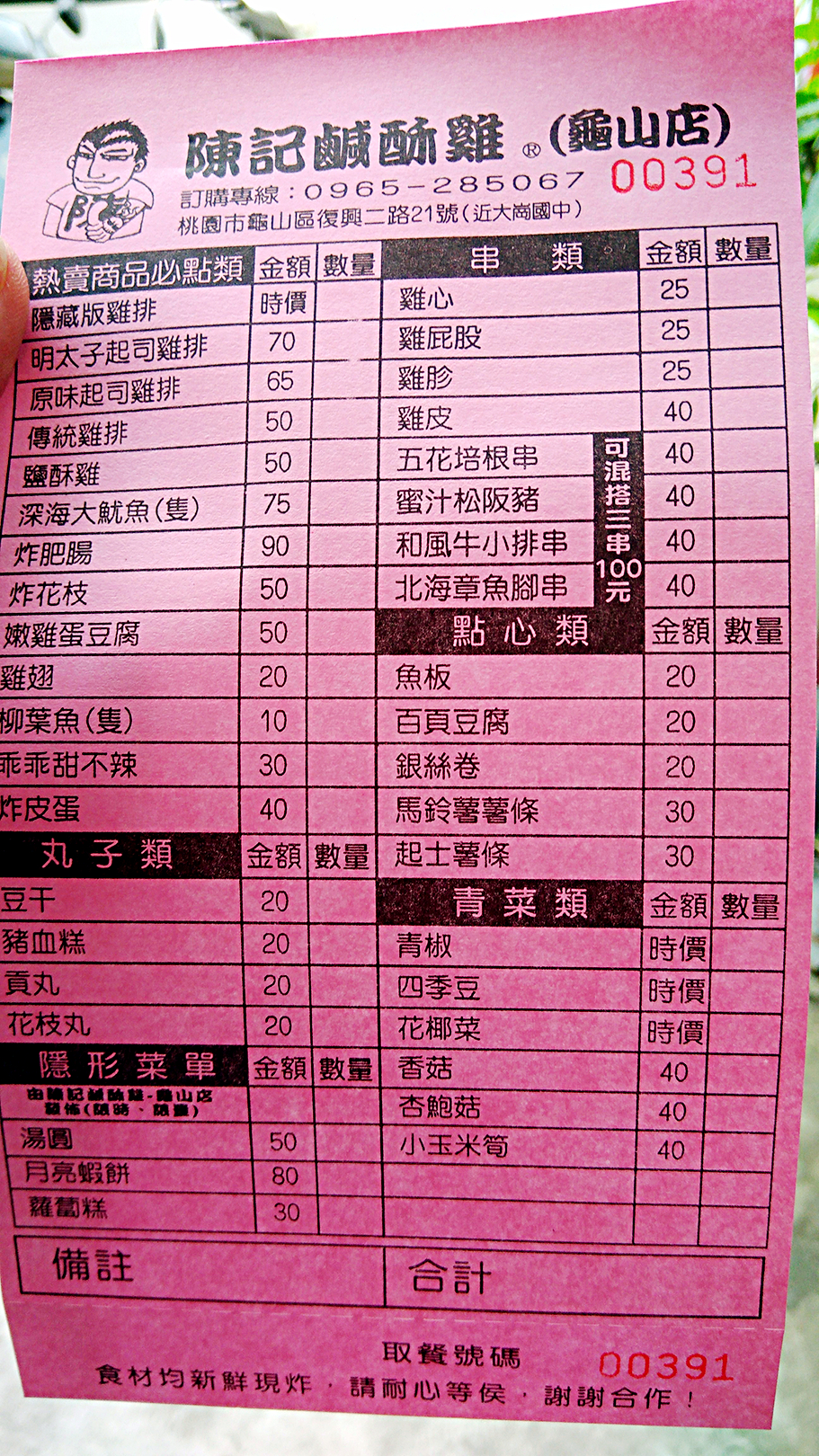 2024最新在地推薦餐廳的菜單_陳記鹹酥雞 – 龜山店的菜單、圖片