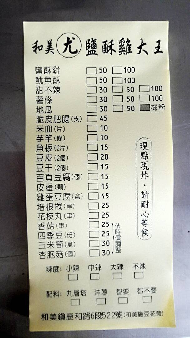 2024最新在地推薦餐廳的菜單_和美(尤)鹽酥雞大王的菜單、圖片