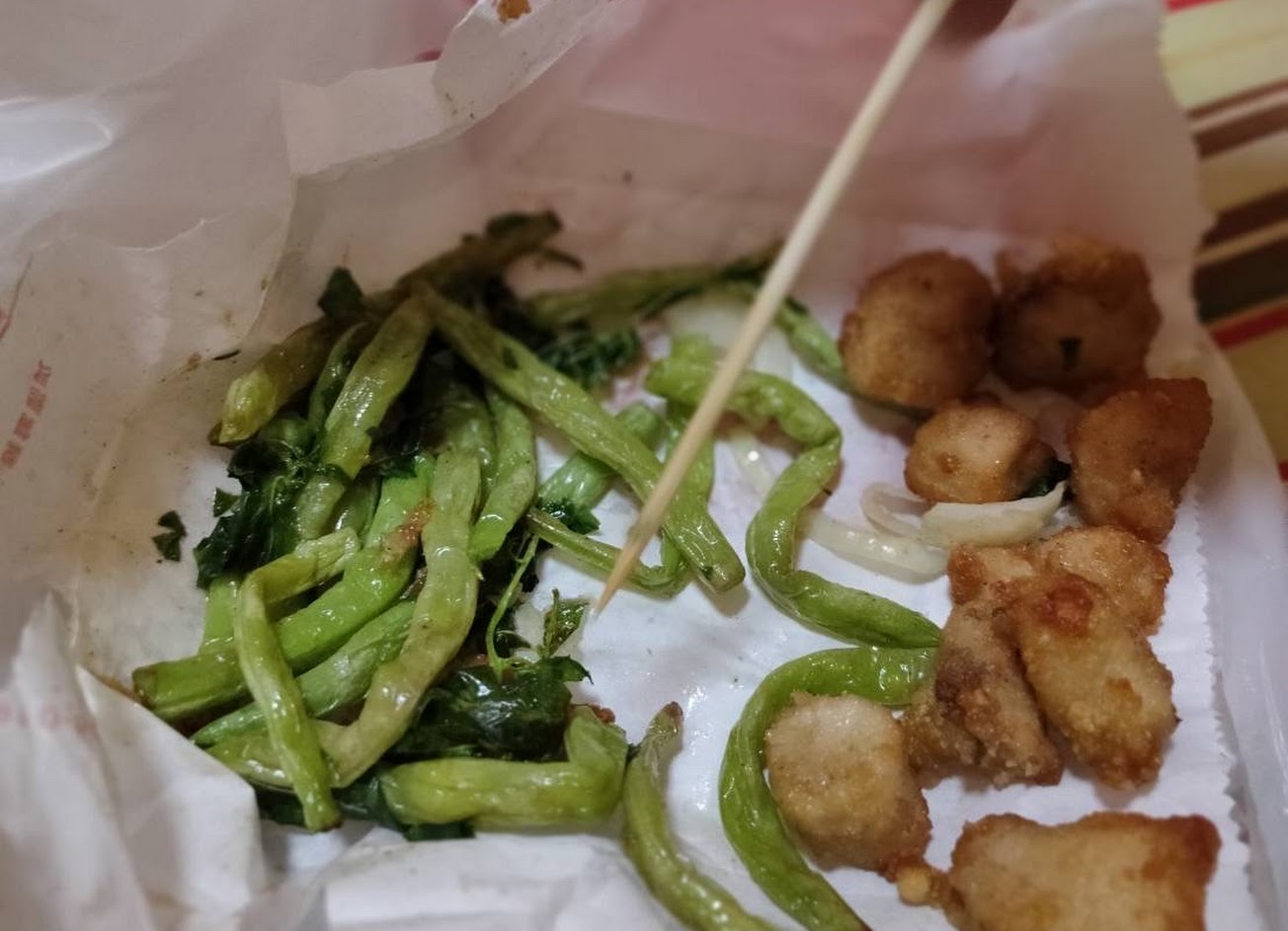 兩份四季豆一份鹹酥雞共110,打開要吃發現這份量是怎麼回事?打回去問還說:「四季豆一份5根,2份這個份量沒錯喔!」?